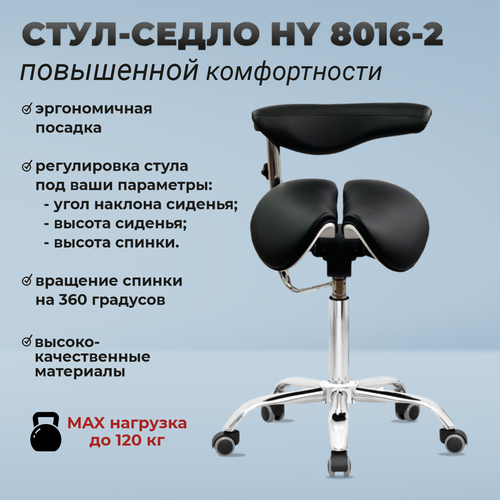 Стул для мастера HY 8016-2 — это отличный образец современного профессионального оборудования, характеризующийся высоким уровнем комфорта и практичности. Особая форма сиденья в виде двойного седла делает стул удобным для длительной работы. Специально разработанная форма стула заставит мастера выпрямить спину, что благотворно подействует на здоровье всего организма. Стул оснащен удобным сидением и спинкой, имеющей анатомическую форму, пневматической регулировкой высоты сиденья и наклона сиденья, а так же высоты поддерживающей спинки. Конструкция спинки имеет возможность вращения вокруг сиденья, а так же фиксируется в нужном положении с помощью винта. Обивка выполнена из качественной эко-кожи, которая прослужит дольше обычной. Наполнитель из мебельного поролона повышенной плотности. Нижняя поверхность седла выполнена из белого глянцевого ABS пластика, что придает стулу особенный стиль. Установленные рычаги и пневматическая система позволяют регулировать высоту стула от 56 см до 63 см с учетом высоты сидения, угол наклона сидения регулируется на 15-18 градусов. Особая форма сиденья-седла делает стул удобным для длительной работы, таких мастеров как массажиста, косметолога, парикмахера, бровиста, художника и дизайнера. За счет наклона, спина не напряжена и находится в естественном положении, она устает гораздо меньше, а так же создает угол в коленных суставах в 135 градусов , что позволяет разгрузить колени и увеличить время работы мастера. Размеры сидения: глубина 36 х ширина 44 х толщина 3 см. Размер спинки: 13 х 48см. Регулировка высоты спинки : от 21 до 29 см.(от седла). Диаметр крестовины: 60 см. материал: металл, хром. Колеса: пластик. Поставляется в разобранном виде. Гарантийный срок: 6 месяцев