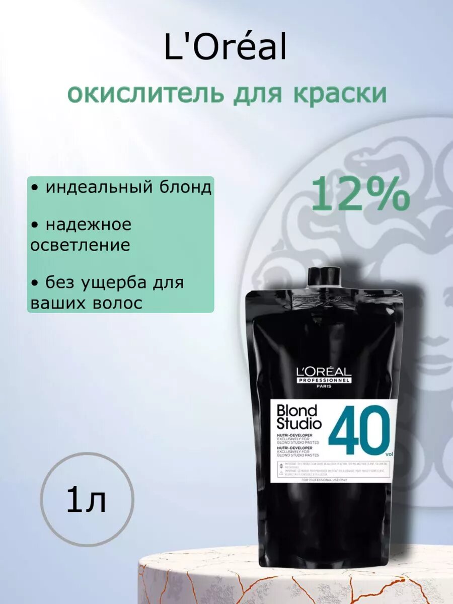 Окислитель для краски 12% Blond Studio Develop от L’Oréal Professional - это мощный оксидант, предназначенный для профессионального окрашивания волос. Содержащий пероксид водорода с высокой концентрацией 12% (40vol), этот продукт обеспечивает высокий уровень окислительной активности, необходимый для интенсивного осветления и окрашивания.