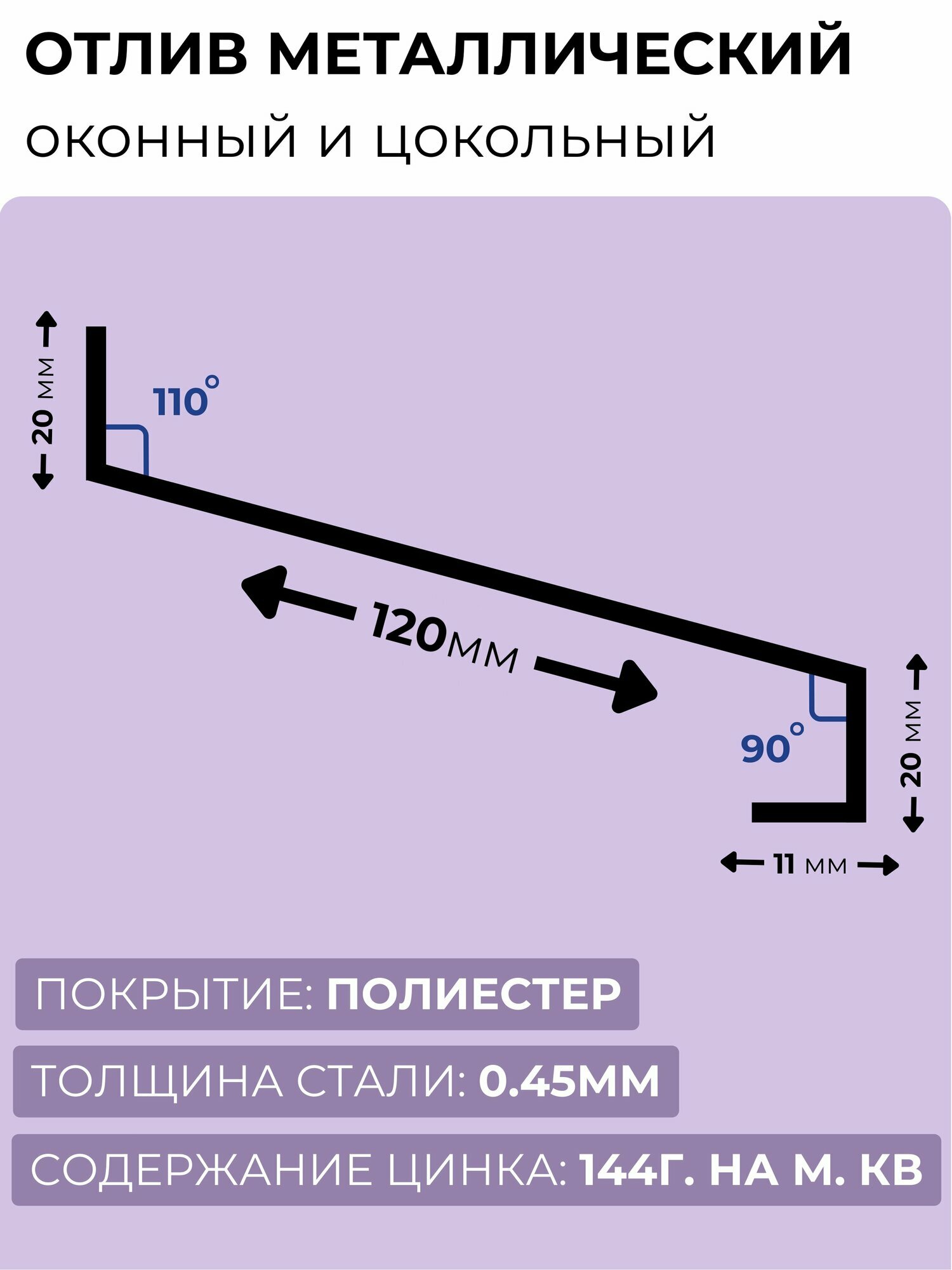 Оконный/цокольный отлив длина 1250 мм, ширина 120 мм, 5 шт, RAL 7024 (темно-серый), толщина стали 0,45 мм: сравнение цен, характеристики, фото, актуальное наличие и цены.