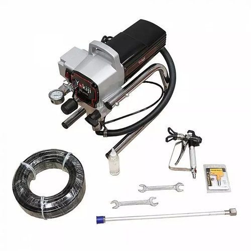 | Подробная комплектация | - аппарат - шланг 1/4" , 15 метров - безвоздушный краскопульт - сопло 517 - удочка 45 см - масленка для смазки |