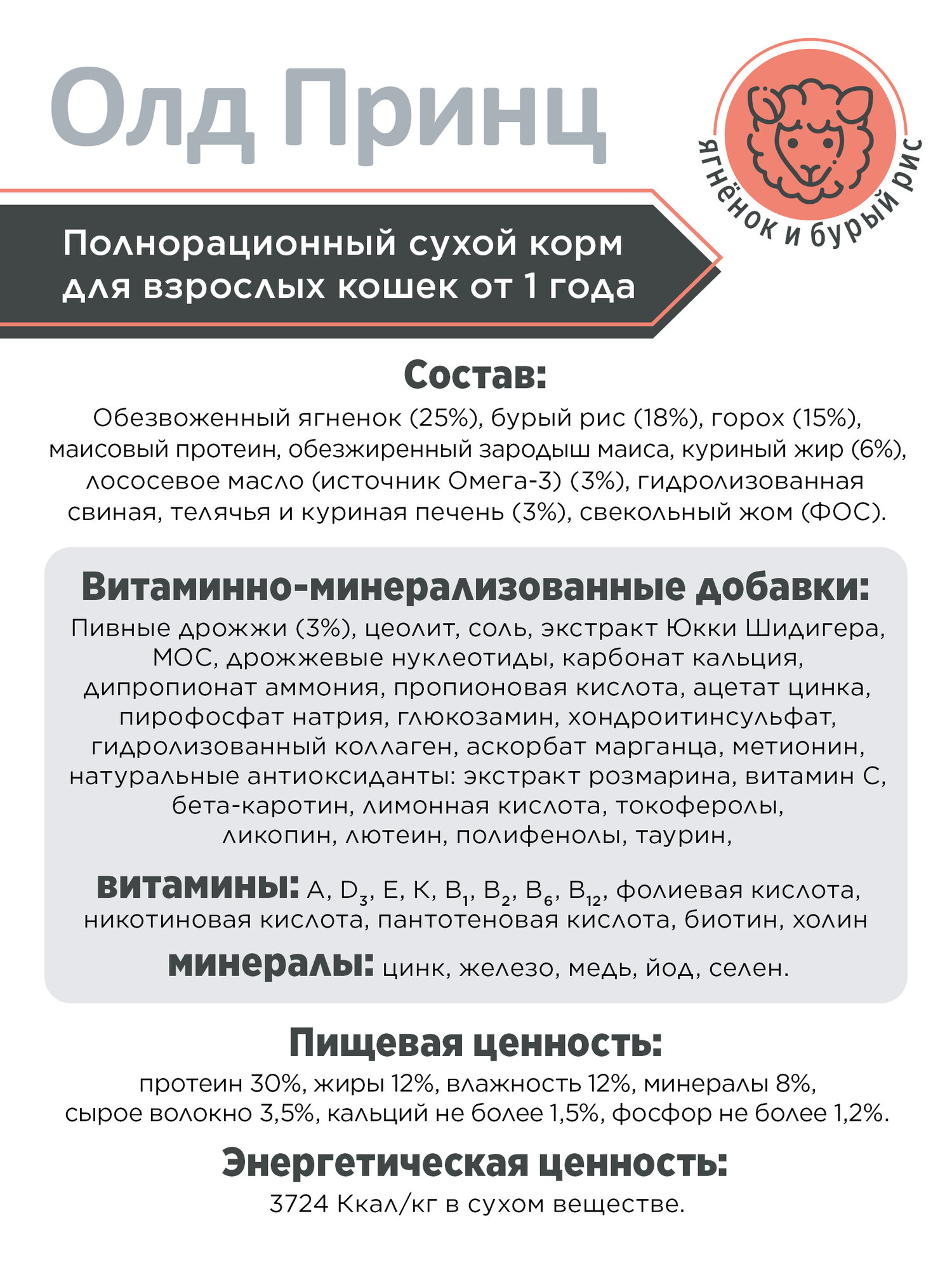 12%, минералы 8% сырое волокно 3,5%, кальций от 1%, фосфор от 0.6% Энергетическая ценность: 3724 Ккал/кг в сухом веществе.