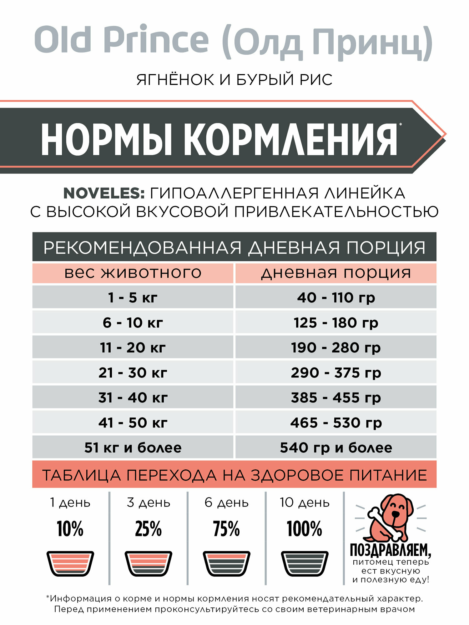 давать сухим или увлажненным водой, комнатной температуры. У животного всегда должно быть достаточное количество свежей питьевой воды. Размер ежедневного рациона может различаться в зависимости от возраста, уровня активности и условий внешней среды. Рекомендованный ежедневный рацион указан в таблице кормления на упаковке.