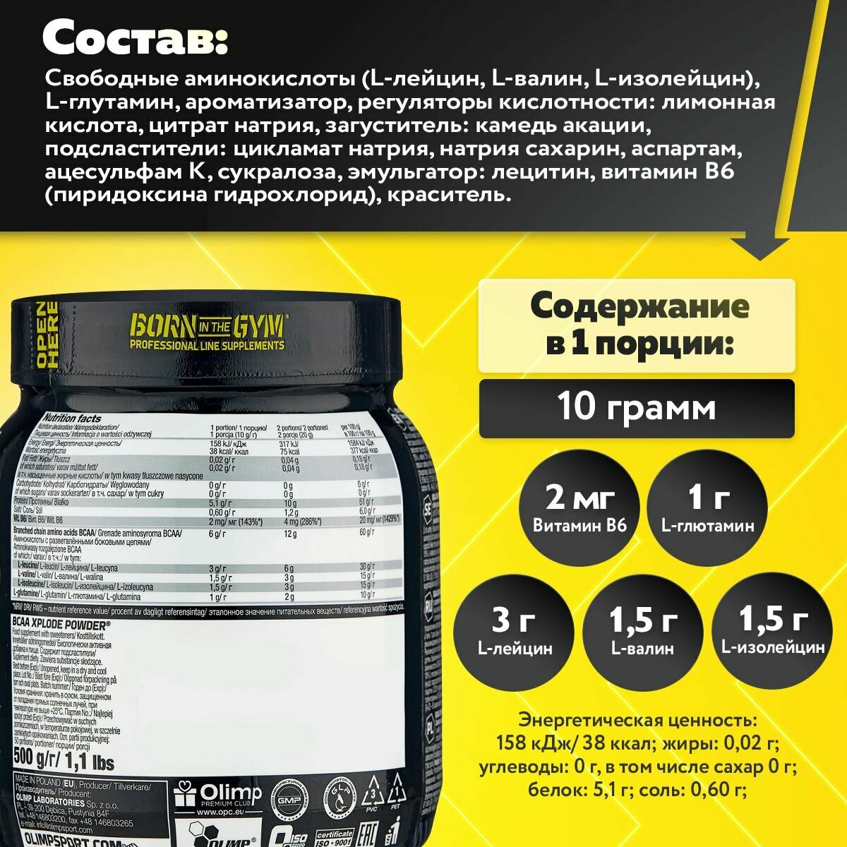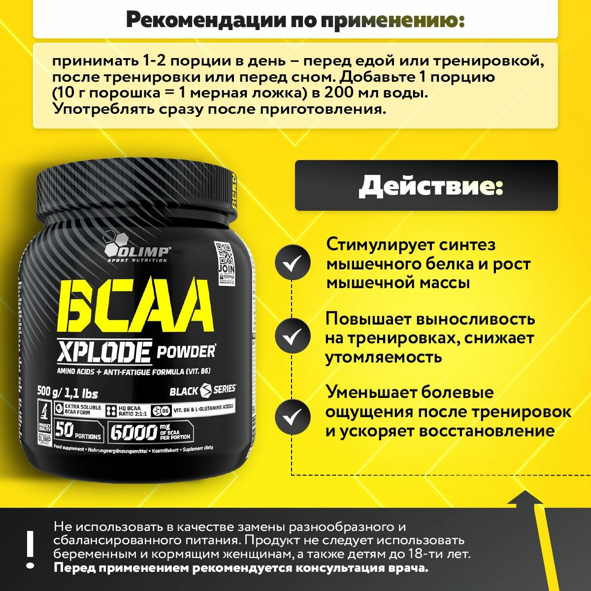 Olimp Sport Nutrition BCAA 2:1:1 Xplode Powder, Аминокислота с глютамином и B6, порошок 500г, вкус ананас, для похудения: сравнение цен, характеристики, фото, актуальное наличие и цены.