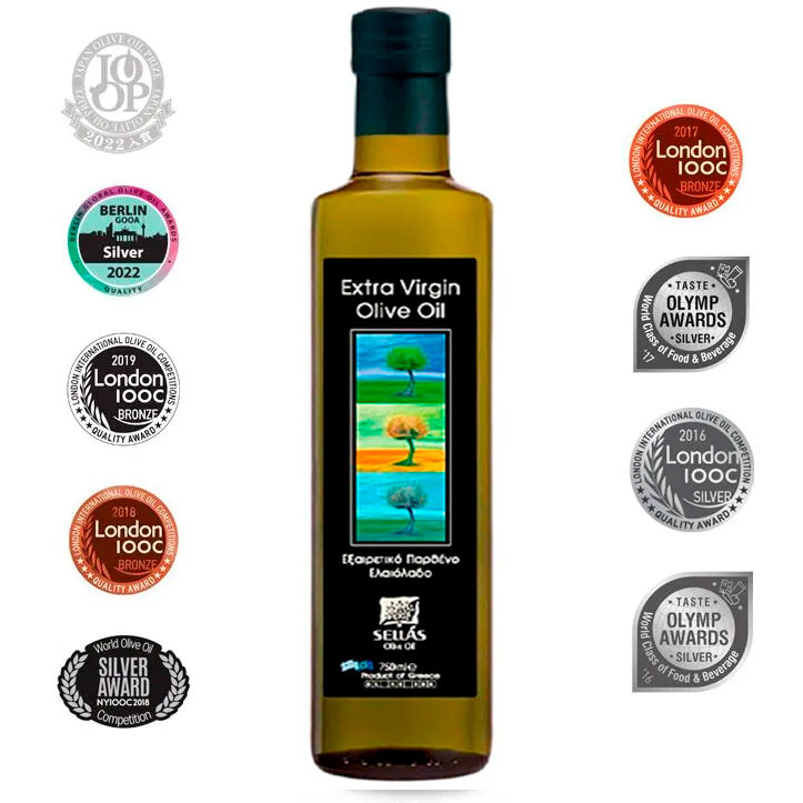Оливковое масло Sellas первого холодного отжима высшей категории c тончайшим ароматом и неповторимым вкусом из региона Пелопоннес с минимальной кислотностью 0,2% - 0,4%.