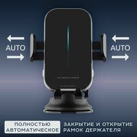 Быстрая беспроводная зарядка 15W. Полностью автоматическое закрытие и открытие рамок устройства. Подвижная катушка делает устройство совместимым с любым смартфоном, включая Z-Flip. Механические кнопки для исключения случайных нажатий. Встроенный суперконденсатор (снимайте телефон даже при выключенном двигателе) Работает безшумно Звуковая индикация позволяющая не забыть телефон в автомобиле. Три вида крепления (в дефлектор, на панель, на стекло).