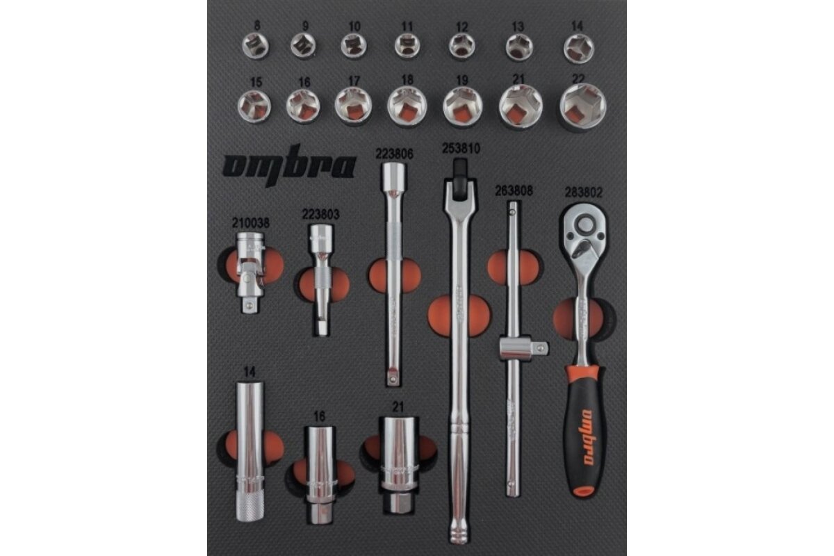 Купить Ombra OMT23STE Набор головок торцевых 3/8″ DR с аксессуарами в EVA ложементе 280х375 мм, 23 предмета с доставкой по всей России.