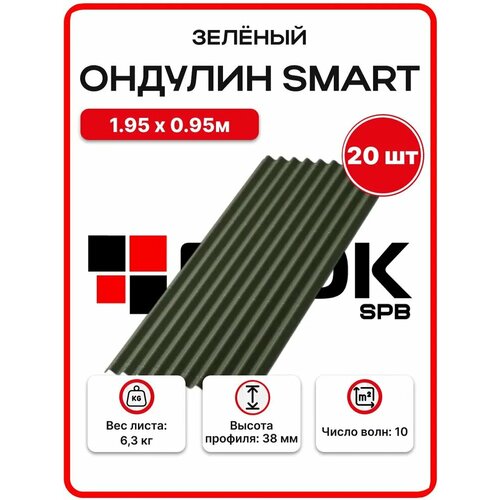 Купить Ондулин Smart 1.95х0.95м зеленый цвет — 20 листов, 37,05м2/упаковка с доставкой по всей России. Ондулин Smart 1.95х0.95м зеленый цвет — 20 листов, 37,05м2/упаковка: сравнение цен, характеристики, фото, актуальное наличие и цены.