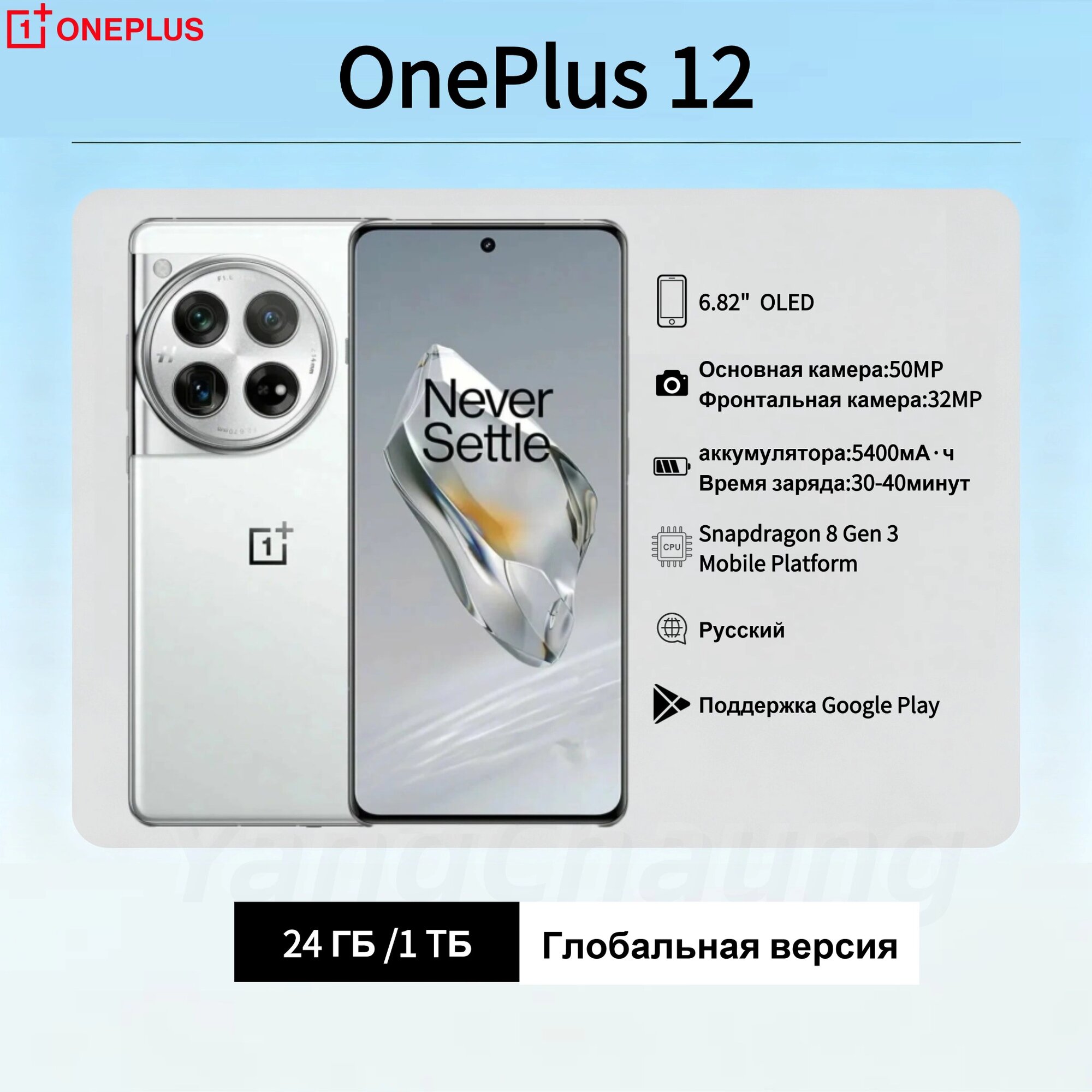 One Plus Смартфон OnePlus 12, поддержка русского языка, 24ГБ/1TБ, камера 50 МП, AMOLED экран 3168х1440, Белый