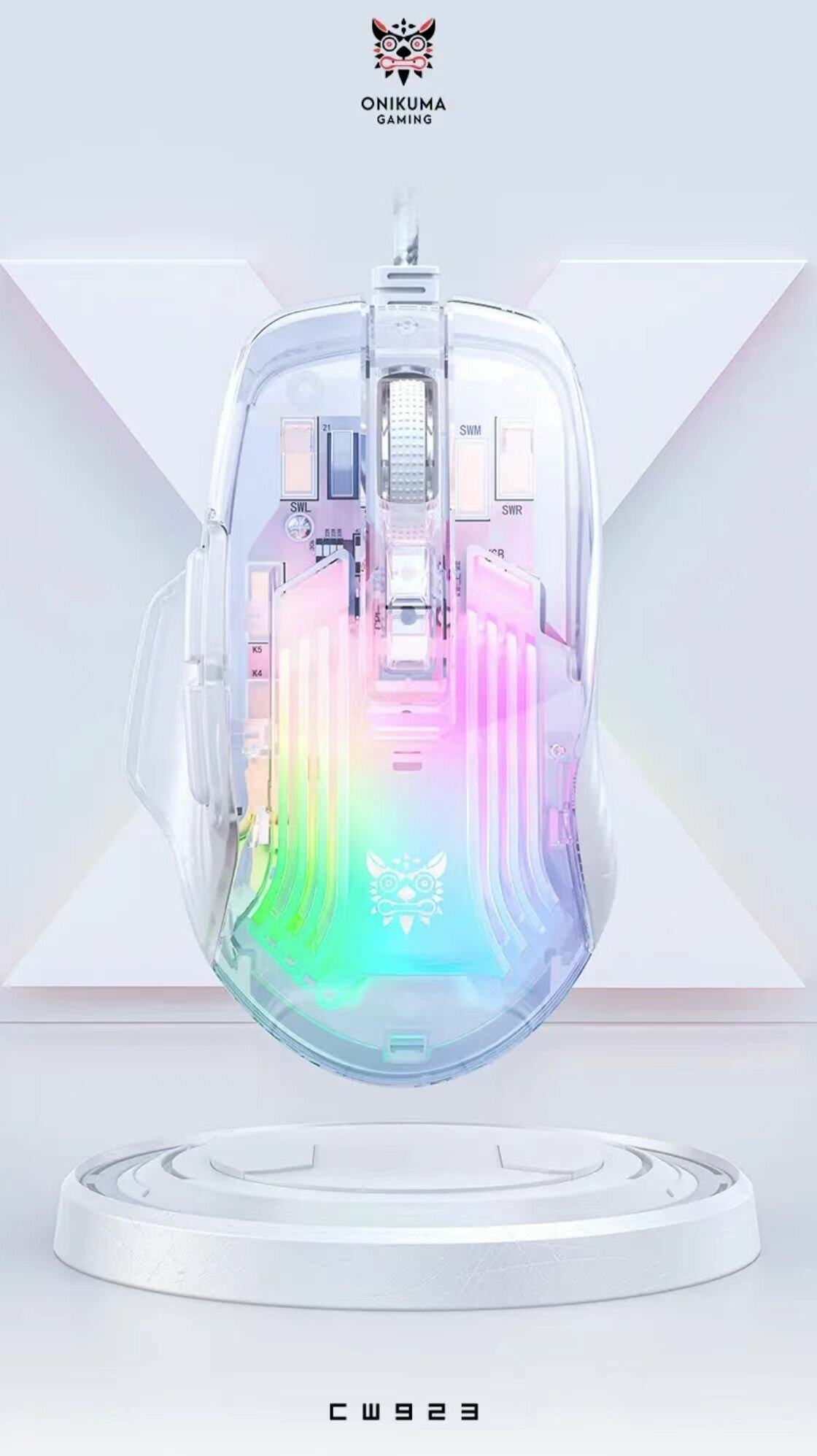 Прозрачный механический дизайн: ONIKUMA CW923 имеет уникальный дизайн прозрачного корпуса, добавляющий освежающую и стильную эстетику вашей игре или настройке.