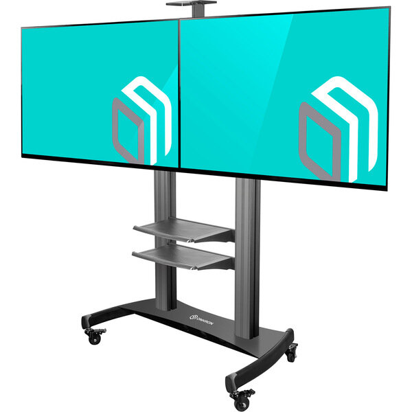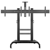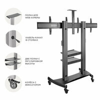 для 2 телевизоров; кабель-канал; регулировка высоты: 1600 ~ 2120 мм; диаметр колес: 75 мм; колеса со встроенным тормозом; максимальный вес одного экрана: 115 кг