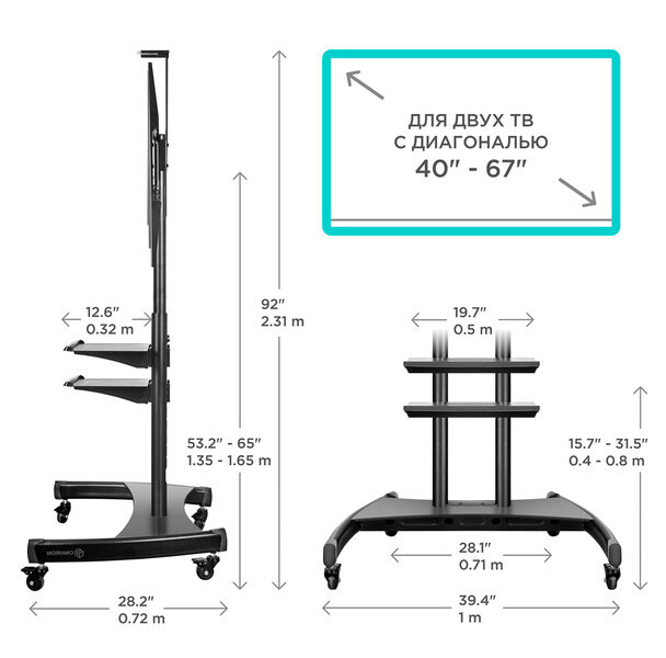 ONKRON TS3881 мобильная стойка для двух телевизоров 40"-67", чёрная