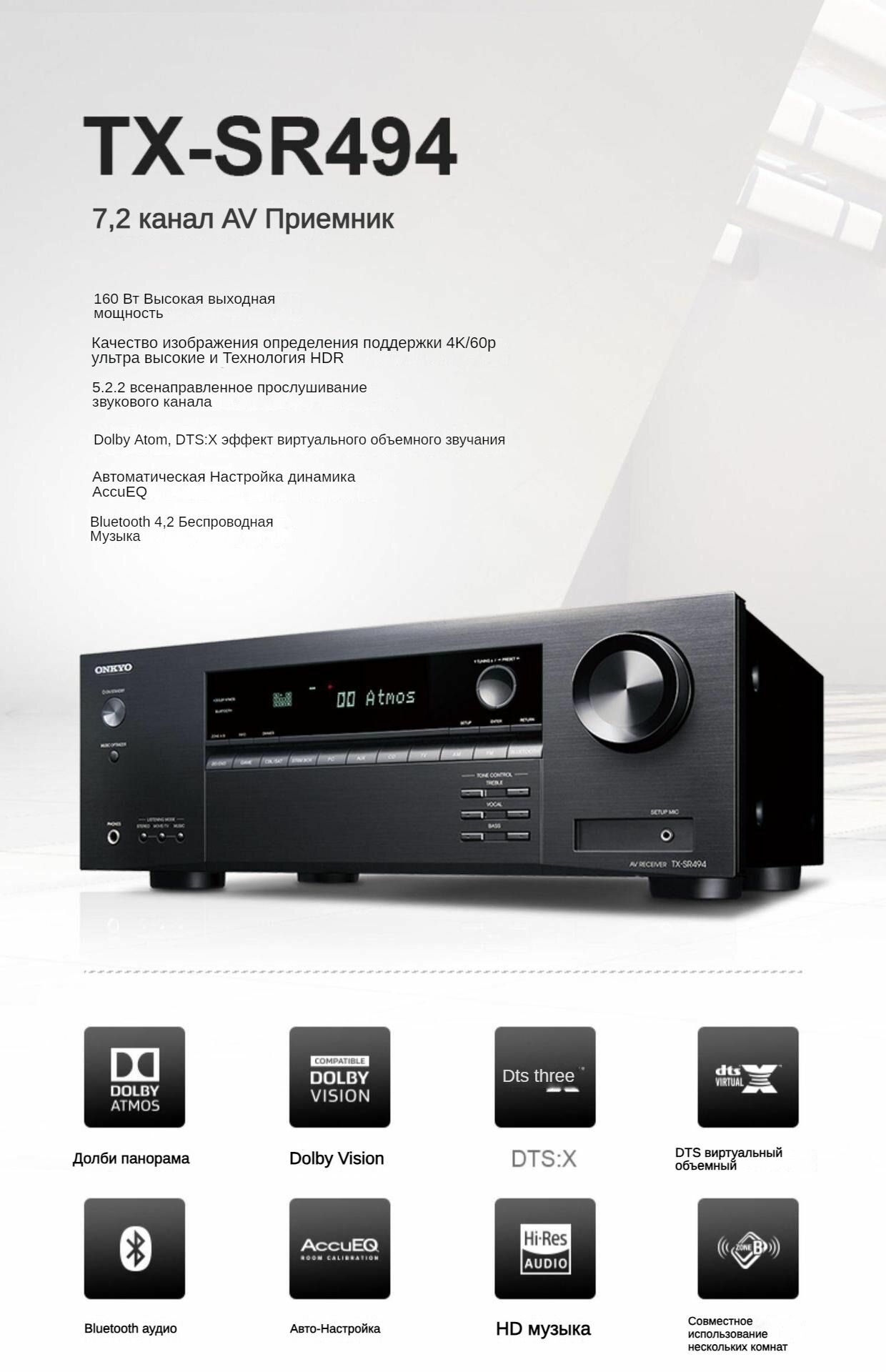 Акустическая калибровка помещения AccuEQ: Для различных помещений можно произвести базовую акустическую коррекцию, чтобы добиться наиболее подходящего эффекта объемного звучания для данного помещения. Он может автоматически определять положение, размер и расстояние до динамика и устанавливать соответствующий уровень звукового давления на основе полученных данных, выбирать идеальную точку перехода сабвуфера и настраивать эквалайзер для всех динамиков.