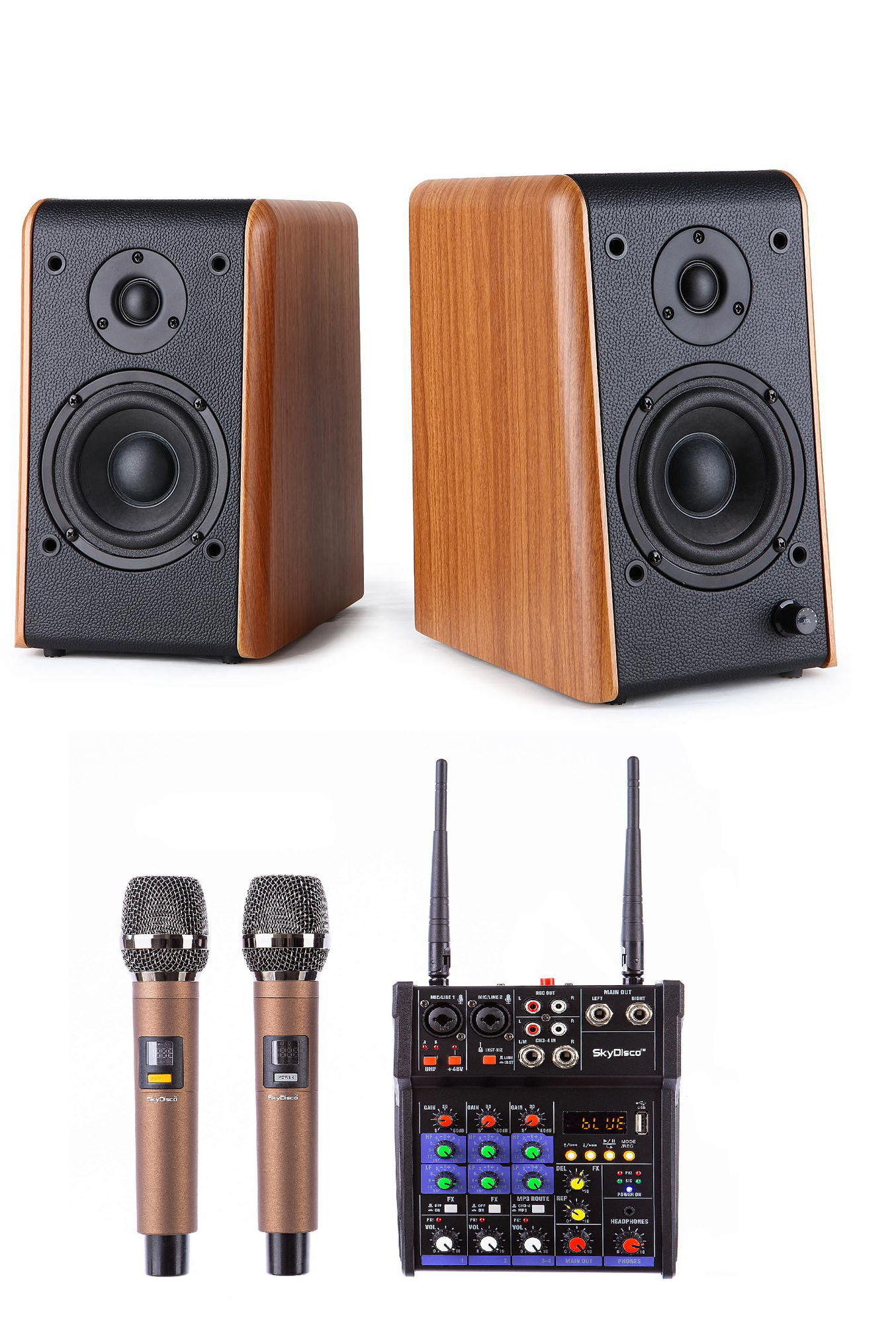 | Подробная комплектация | приемник-микшер 2 ручных передатчика (микрофона) акустическая система адаптер питания аудио кабель мини джек 3,5 мм. - RCA 1,5 метра аудио кабель RCA - RCA 1,5 метра переходник джек 3,5 мм. мама - джек 6,3 мм. стерео папа |