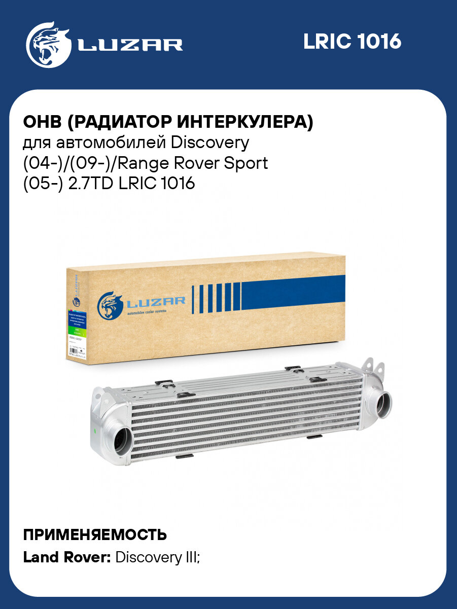 ОНВ (радиатор интеркулера) для автомобилей Discovery (04-)/(09-)/Range Rover Sport (05-) 2.7TD LRIC 1016 LUZAR: сравнение цен, характеристики, фото, актуальное наличие и цены.