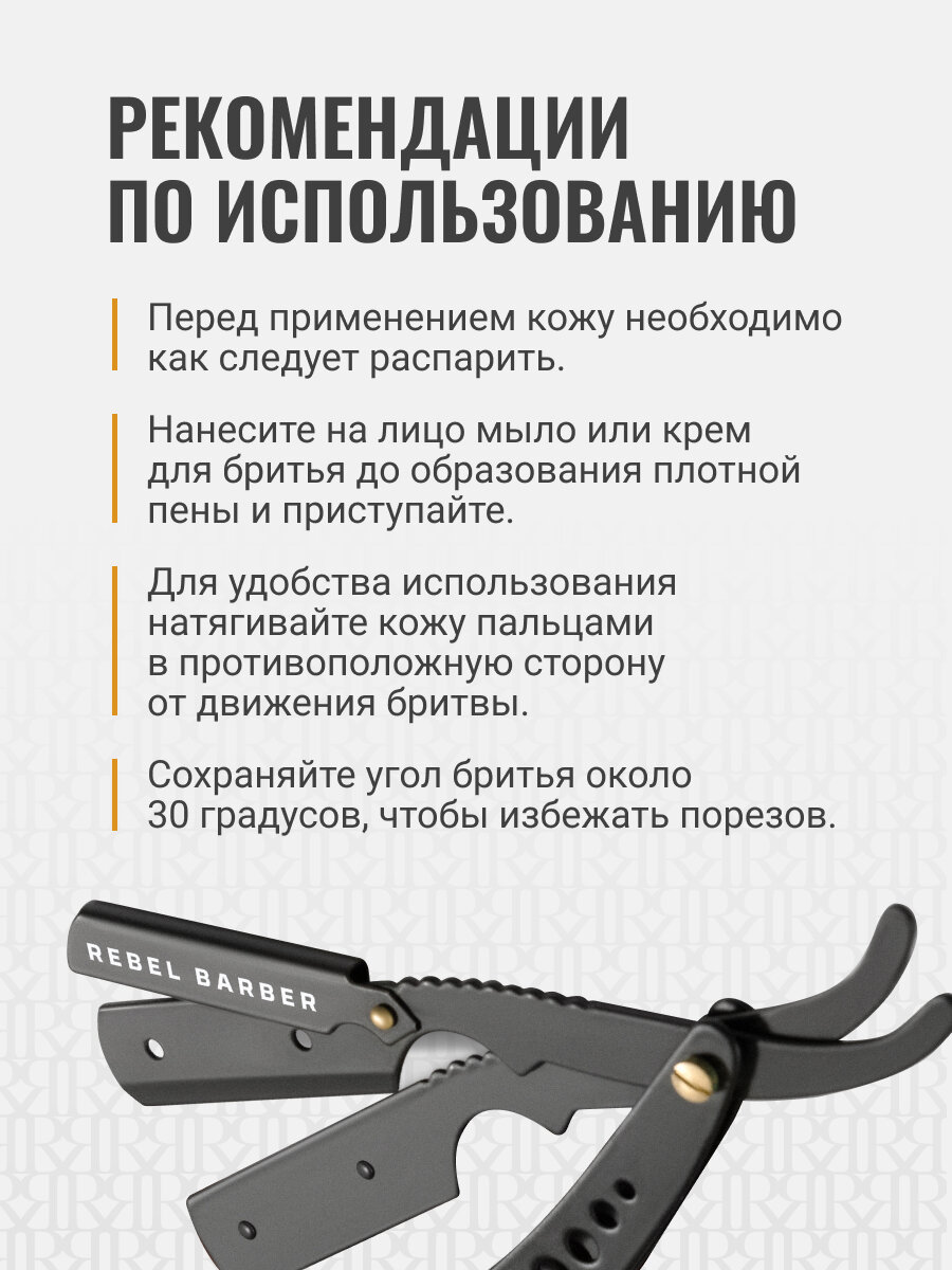- Опасная бритва предполагает использование сменных лезвий. Рекомендуем Single Edge Razor Blades — односторонние сменные лезвия для опасных бритв от бренда Rebel.