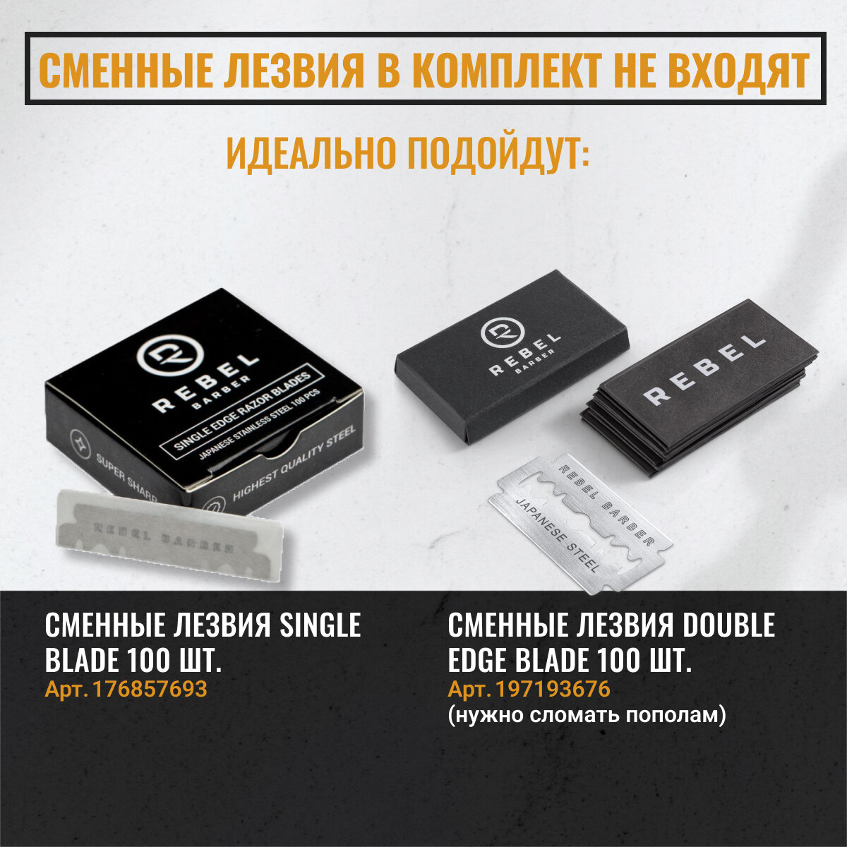 Опасная бритва предполагает использование сменных лезвий. Рекомендуем Single Edge Razor Blades — односторонние сменные лезвия для опасных бритв от бренда Rebel.