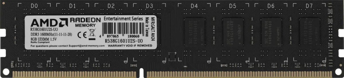 Оперативная память AMD R538G1601U2S-UO black DDR3 — 1x 8ГБ 1600МГц, DIMM, OEM: сравнение цен, характеристики, фото, актуальное наличие и цены.