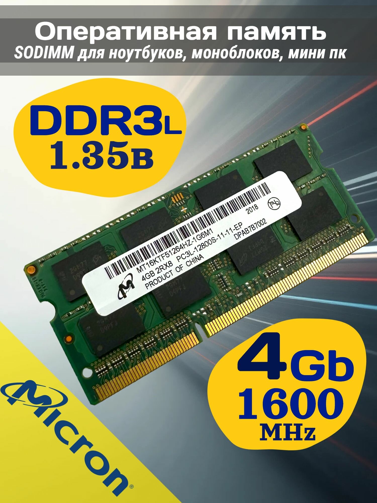 Купить Оперативная память DDR3L 4Gb 1600 Mhz Micron MT16KTF51264HZ-1G6M1 So-Dimm PC3L-12800S для ноутбука с доставкой по всей России. Оперативная память DDR3L 4Gb 1600 Mhz Micron MT16KTF51264HZ-1G6M1 So-Dimm PC3L-12800S для ноутбука: сравнение цен, характеристики, фото, актуальное наличие и цены.