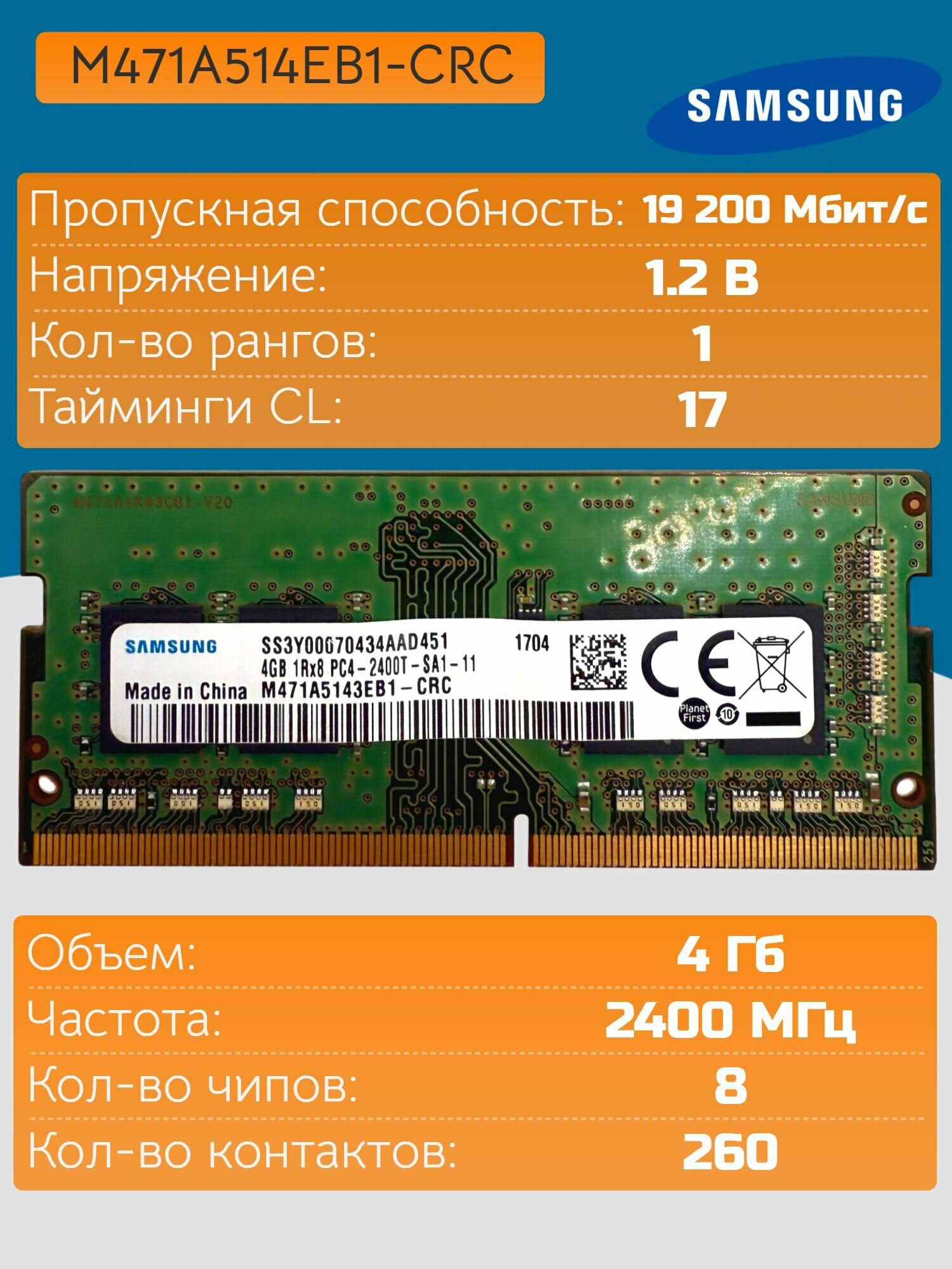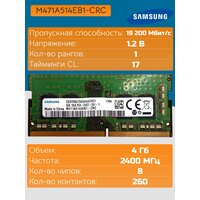 Оперативная память DDR4 4Gb 2400 Mhz Samsung M471A5143EB1-CRC PC4-2400T So-Dimm для ноутбука: сравнение цен, характеристики, фото, актуальное наличие и цены.
