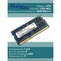 Купить Оперативная память DDR3 4Gb 1333 Mhz Elpida EBJ41UF8BCS0-DJ-F So-Dimm PC3-10600 для ноутбука с доставкой по всей России. Оперативная память DDR3 4Gb 1333 Mhz Elpida EBJ41UF8BCS0-DJ-F So-Dimm PC3-10600 для ноутбука: сравнение цен, характеристики, фото, актуальное наличие и цены.