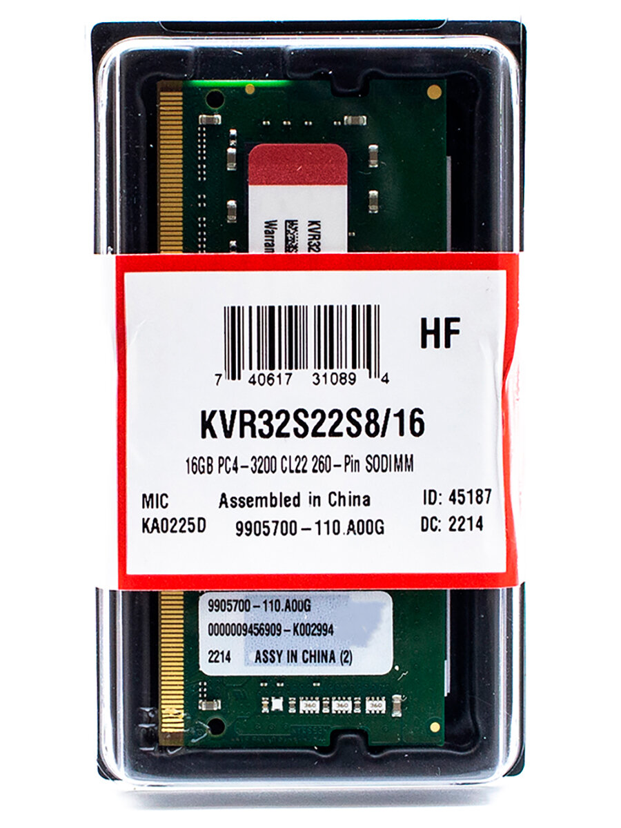 Оперативная память Kingston SO-DIMM DDR4 16Gb 3200MHz pc-25600 (KVR32S22S8/16) поставляется в виде одного модуля объемом 16 Гб, что позволяет увеличить объем оперативной памяти вашего ноутбука без необходимости приобретения дополнительных модулей.