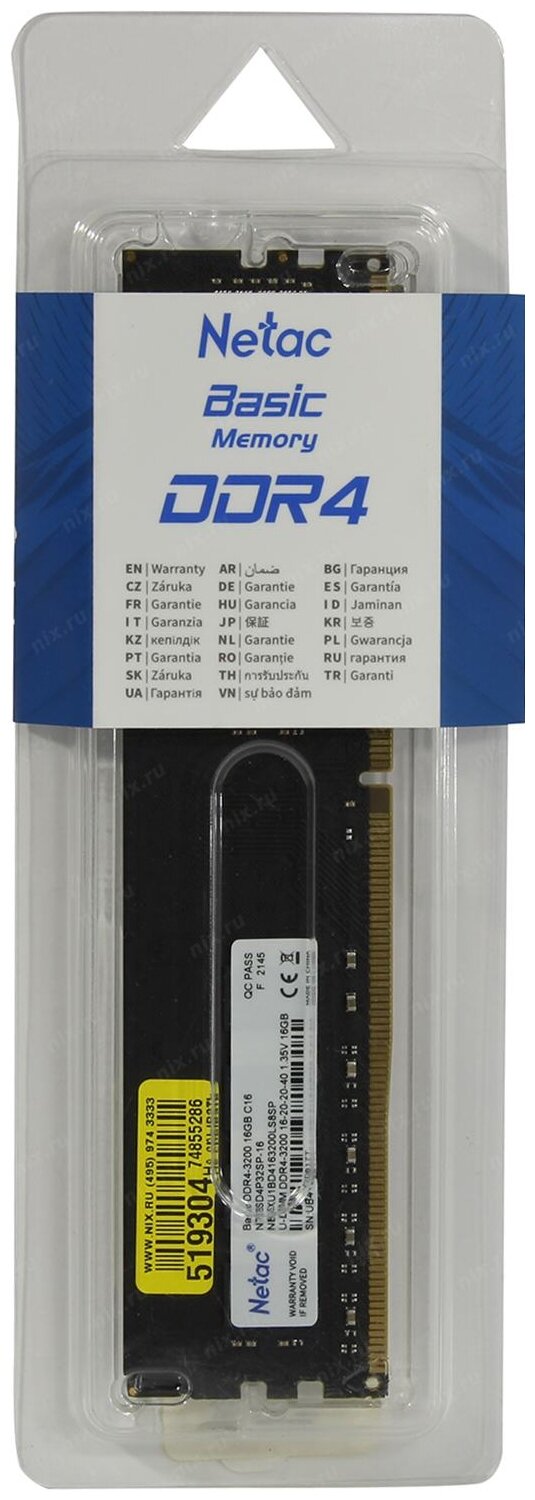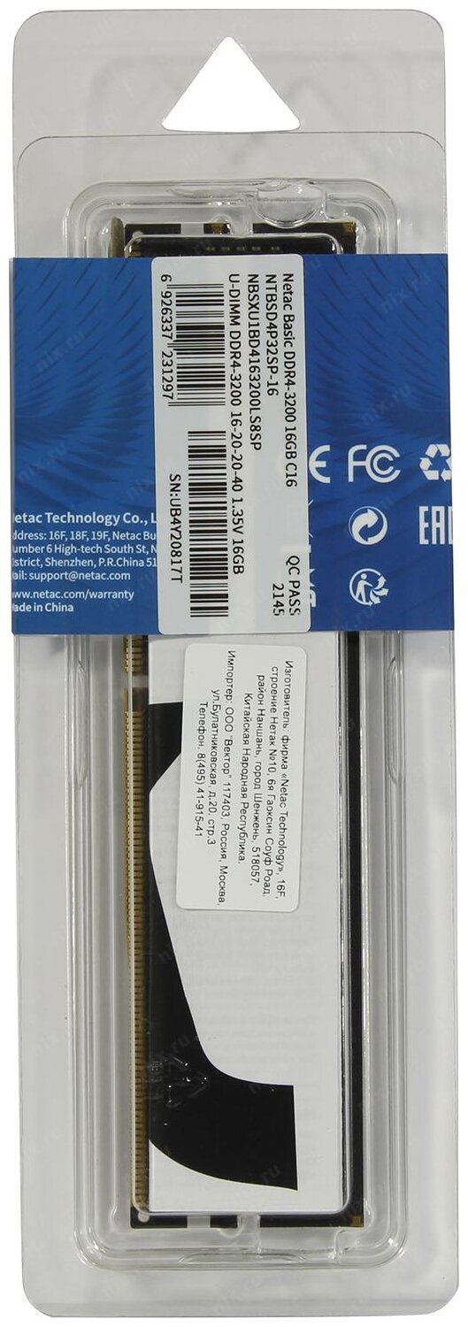 Оперативная память Netac Basics 16 ГБ DDR4 DIMM CL16 NTBSD4P32SP-16: сравнение цен, характеристики, фото, актуальное наличие и цены.