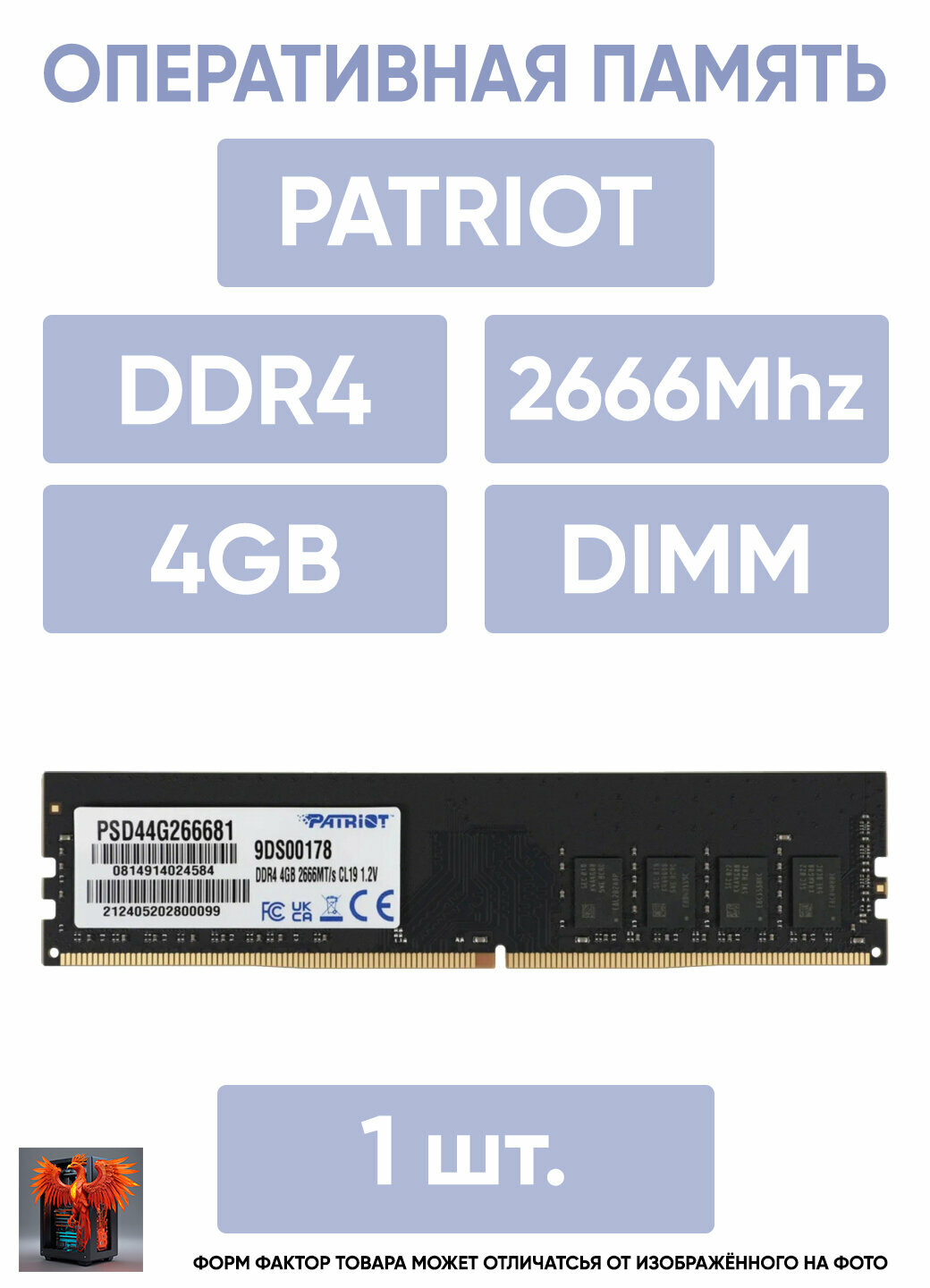 Оперативная память Patriot Signature Line (PSD44G266681) 4 ГБ DDR4 2666Mhz: сравнение цен, характеристики, фото, актуальное наличие и цены.