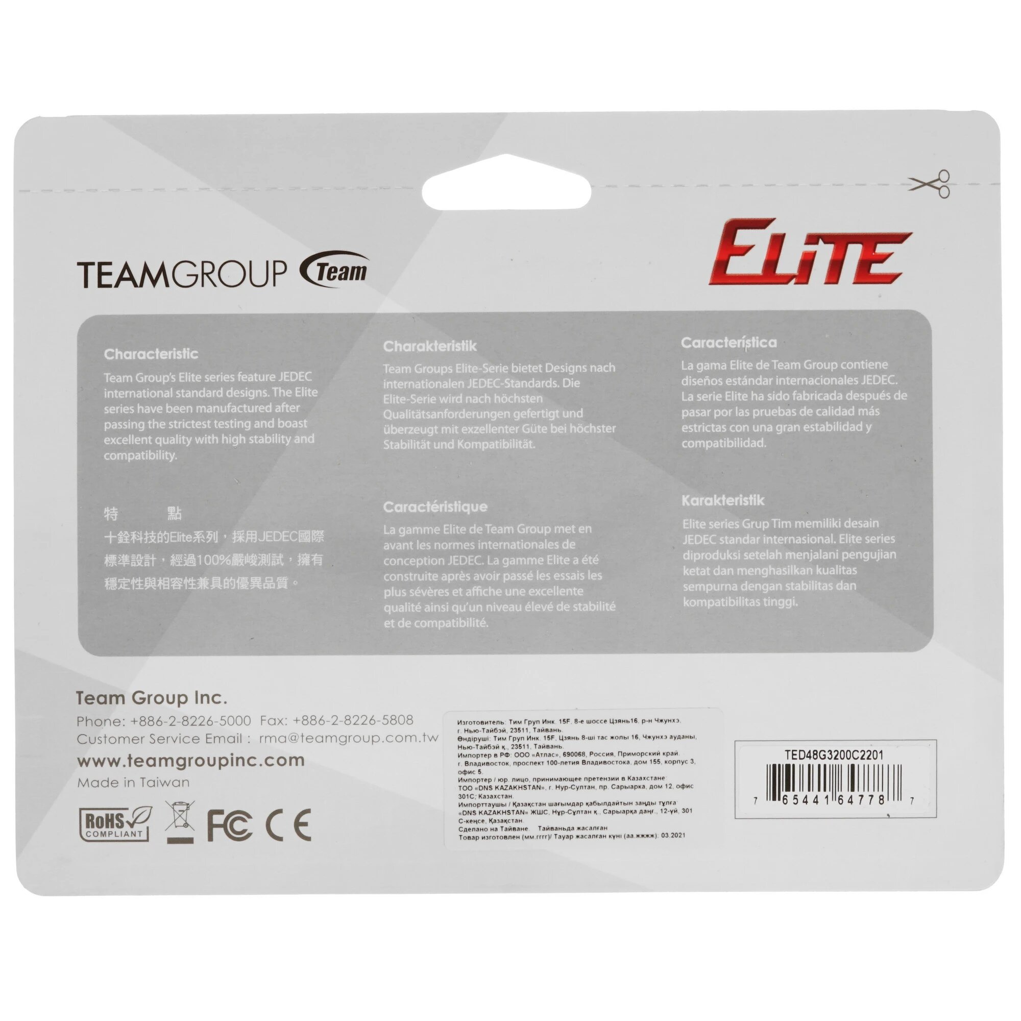 Купить Оперативная память TeamGroup T-Force Elite [TED48G3200C2201] 8 ГБ, DDR4, 8 ГБx1 шт, 3200 МГц, 22(CL)-22-22-52 с доставкой по всей России.