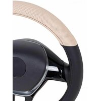 Купить Оплетка, чехол (накидка) на руль Хонда н-бокс (2017 — 2020) микровэн / Honda N-BOX, Экокожа, Черный и бежевый с доставкой по всей России.