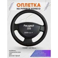 Оплетка на рулевое колесо (накидка, чехол на руль) для Peugeot 308 (Пежо ) 2008, 2009, 2010, 2011, 2012, 2013, 2014, 2015, 2016, 2017, 2018, 2019, 2020, 2021, 2022, 2023 годов выпуска, размер M(37-38см)