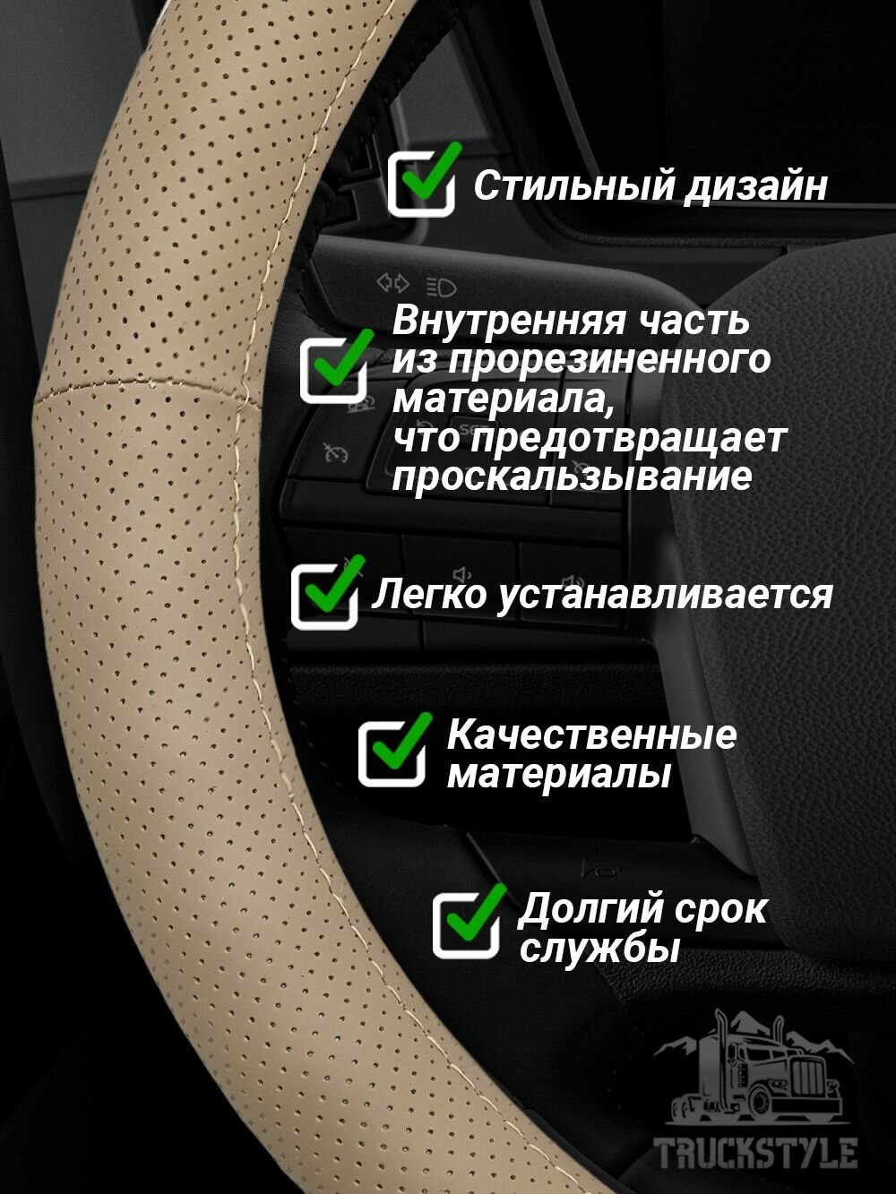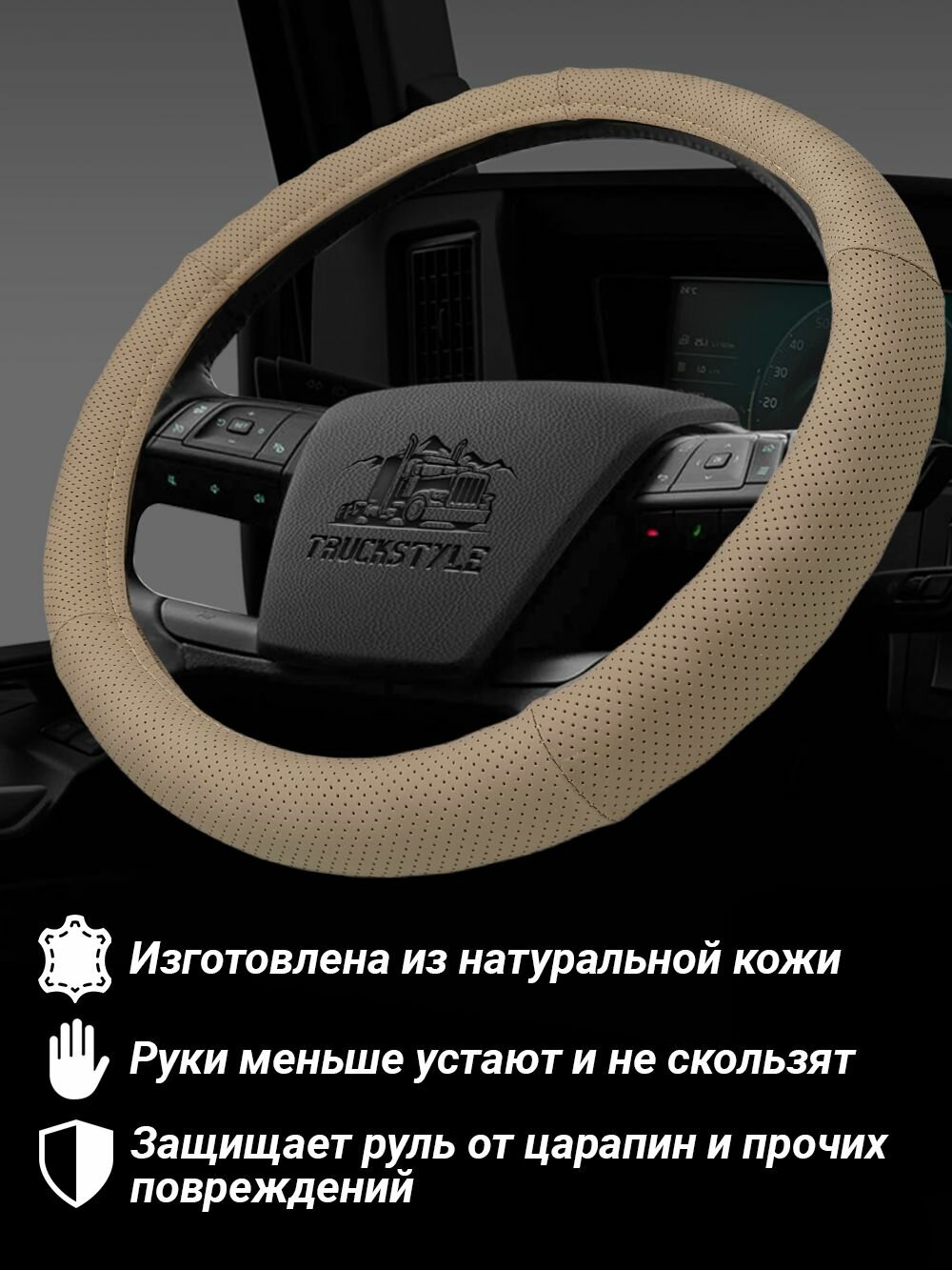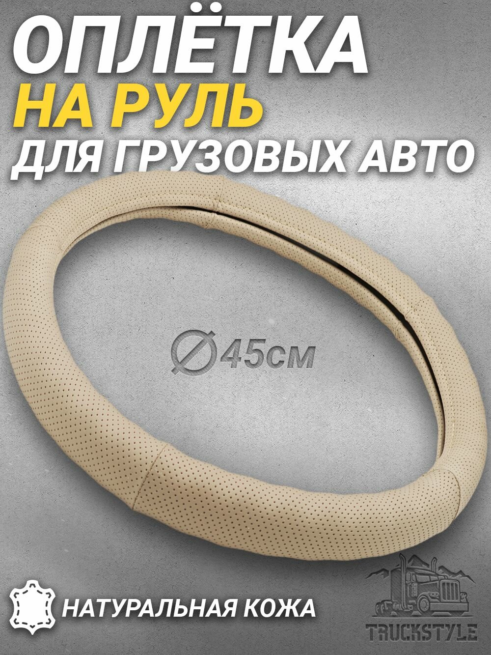 Оплетка на руль грузового автомобиля 45 см. Бежевый цвет, натуральная кожа с перфорацией. Подходит на SITRAK, SHACMAN, VOLVO и пр. Аксессуар для грузовика: сравнение цен, характеристики, фото, актуальное наличие и цены.