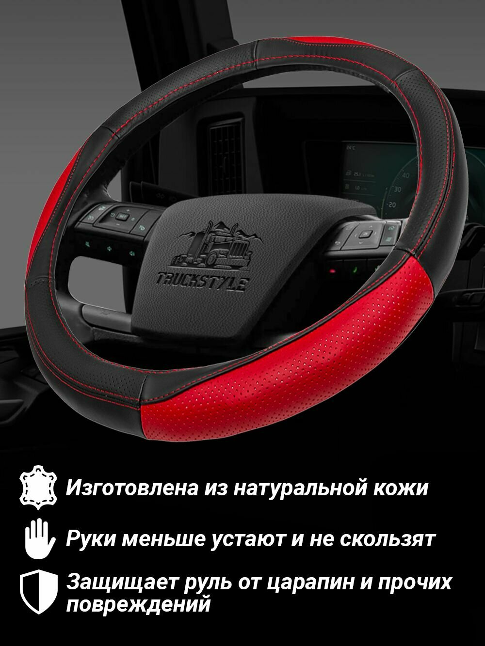 Оплетка на руль грузового автомобиля 45 см. Черный, красный цвет, натуральная кожа с перфорацией. Подходит на SITRAK, SHACMAN, VOLVO и пр. Аксессуар для грузовика: сравнение цен, характеристики, фото, актуальное наличие и цены.