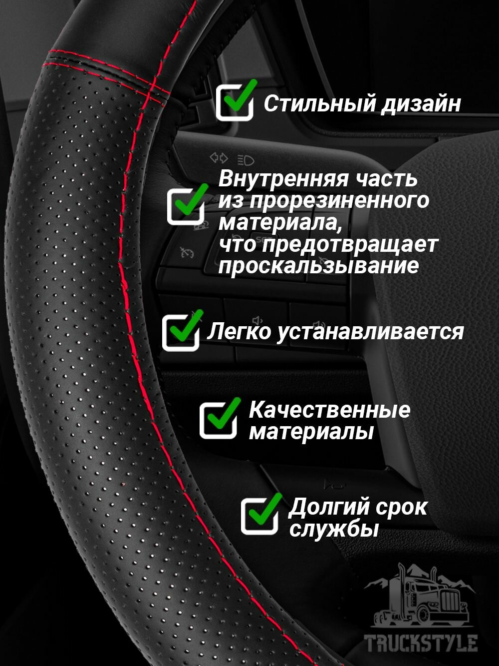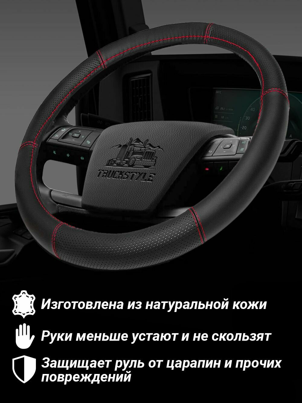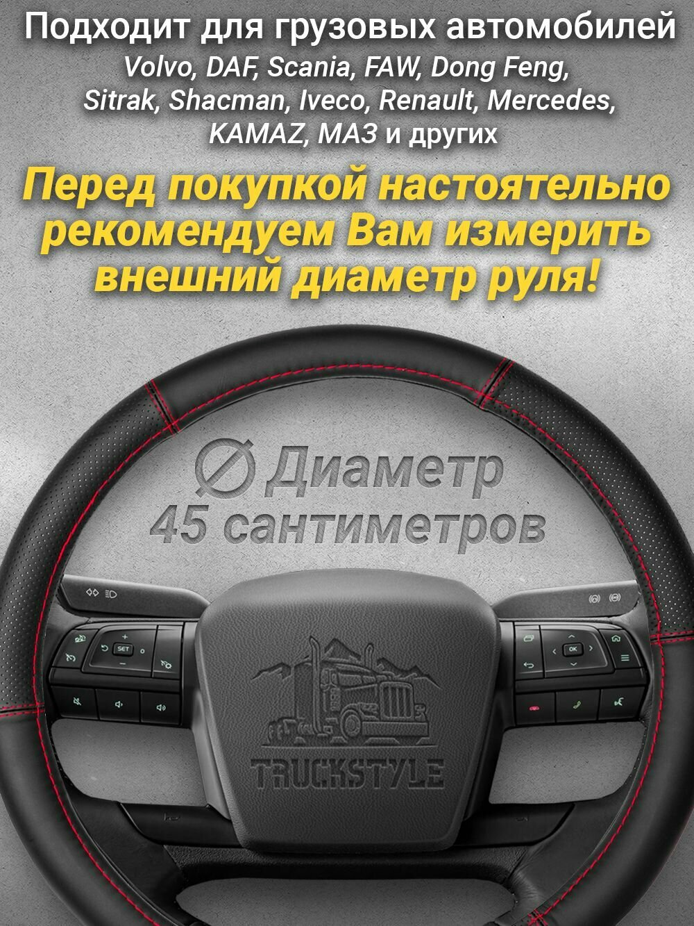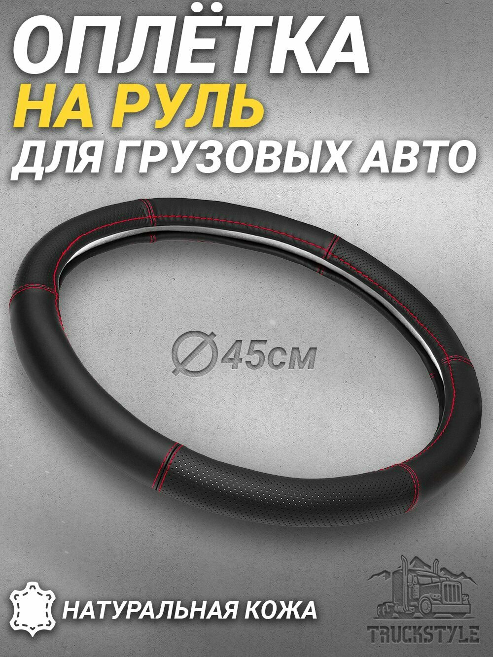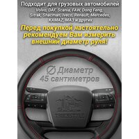 Оплетка на руль грузового автомобиля 45 см. Черный цвет, красная строчка, натуральная кожа с перфорацией. Подходит на SITRAK, SHACMAN, VOLVO и пр. Аксессуар для грузовика: сравнение цен, характеристики, фото, актуальное наличие и цены.