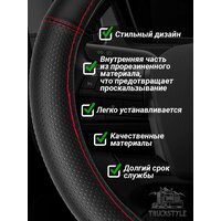 Оплетка на руль грузового автомобиля 45 см. Черный цвет, красная строчка, натуральная кожа с перфорацией. Подходит на SITRAK, SHACMAN, VOLVO и пр. Аксессуар для грузовика