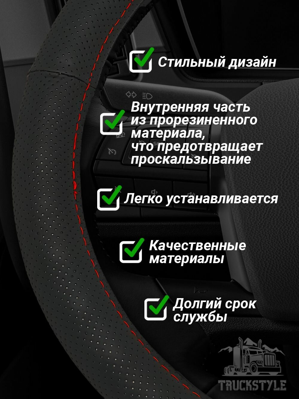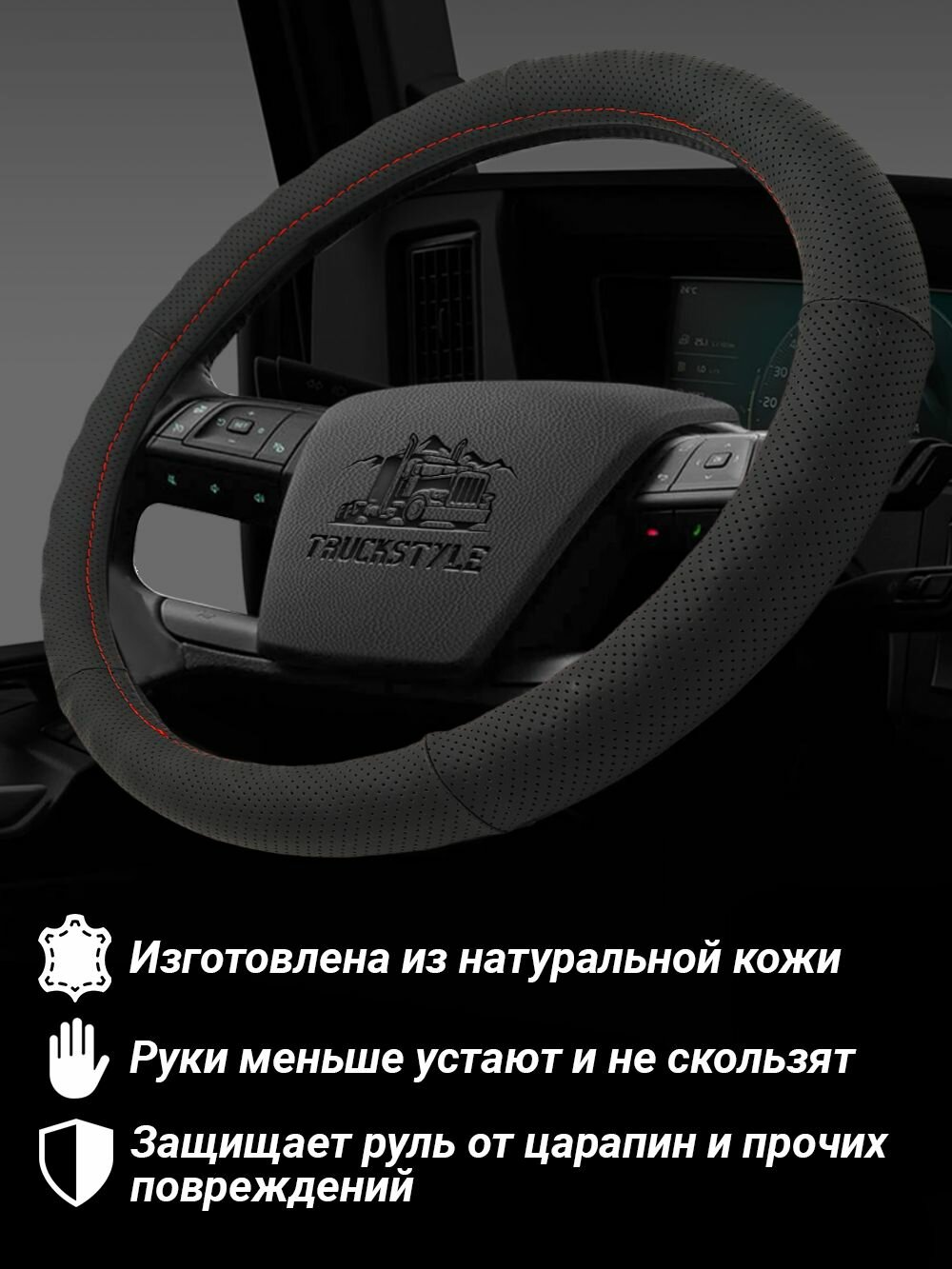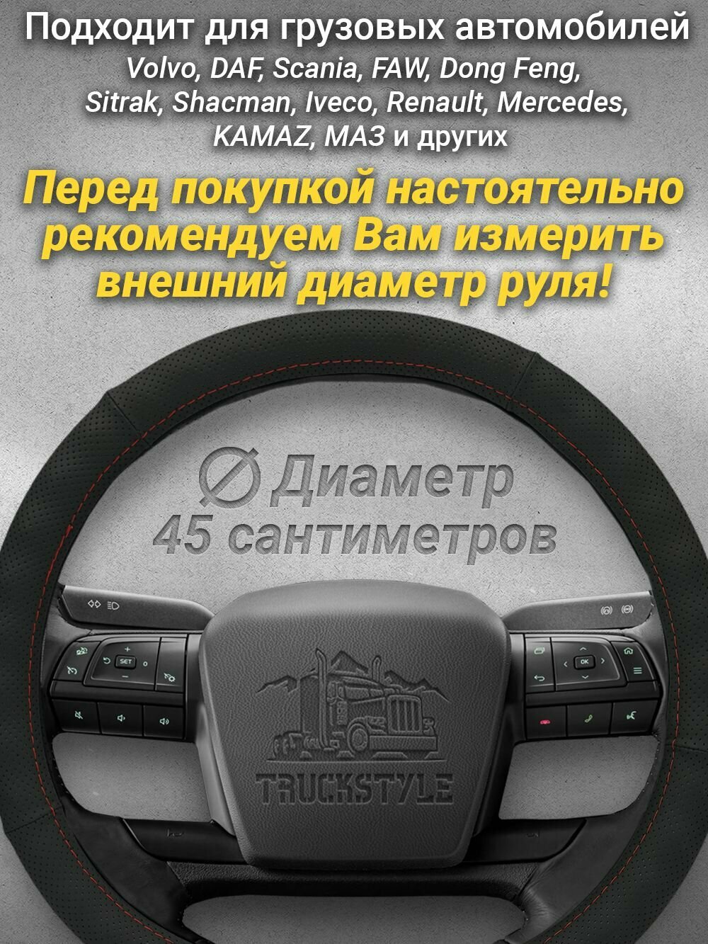 Оплетка на руль грузового автомобиля 45 см. Черный цвет, красная строчка, натуральная кожа с перфорацией. Подходит на SITRAK, SHACMAN, VOLVO и пр. Аксессуар для грузовика: сравнение цен, характеристики, фото, актуальное наличие и цены.