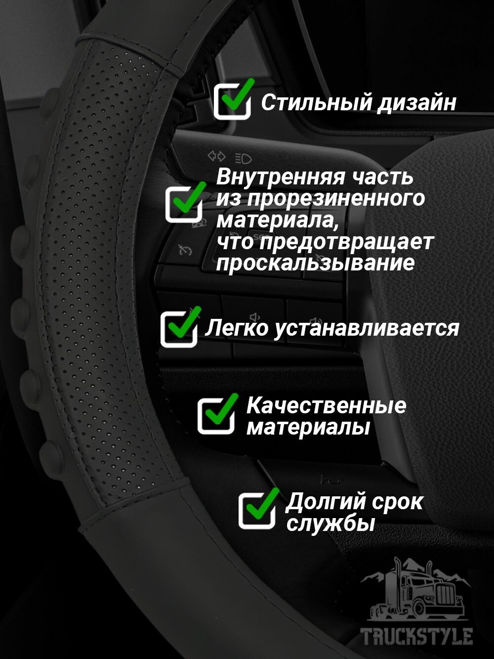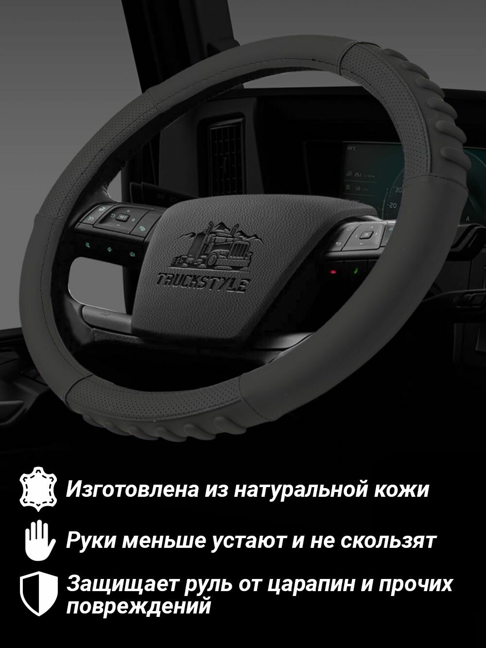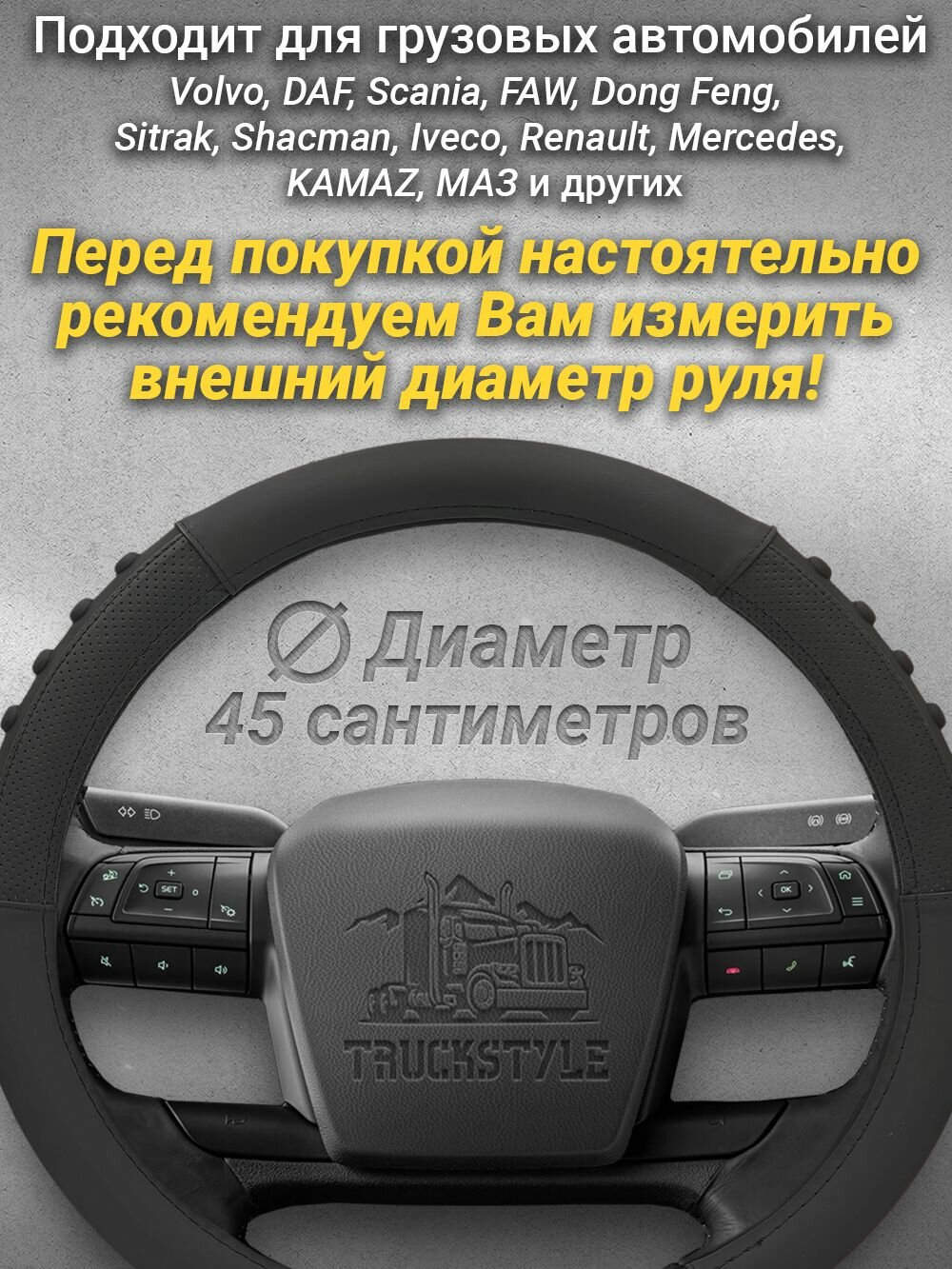 Оплетка на руль грузового автомобиля 45 см. Черный цвет, натуральная кожа с эргономичными вставками под пальцы. Подходит на SITRAK, SHACMAN, VOLVO и пр. Аксессуар для грузовика: сравнение цен, характеристики, фото, актуальное наличие и цены.
