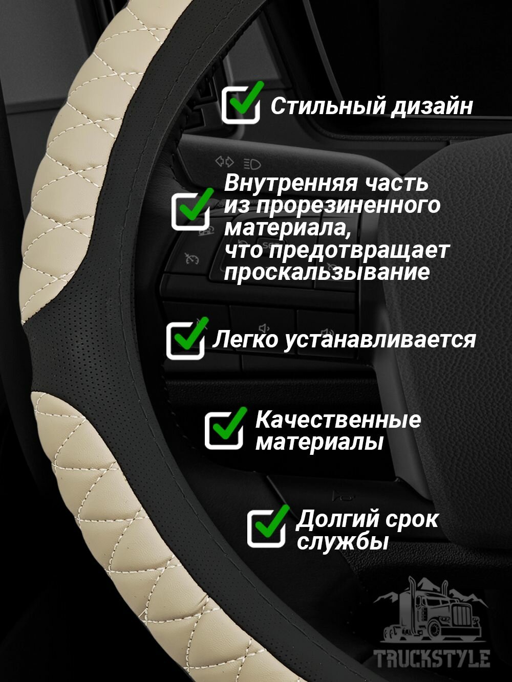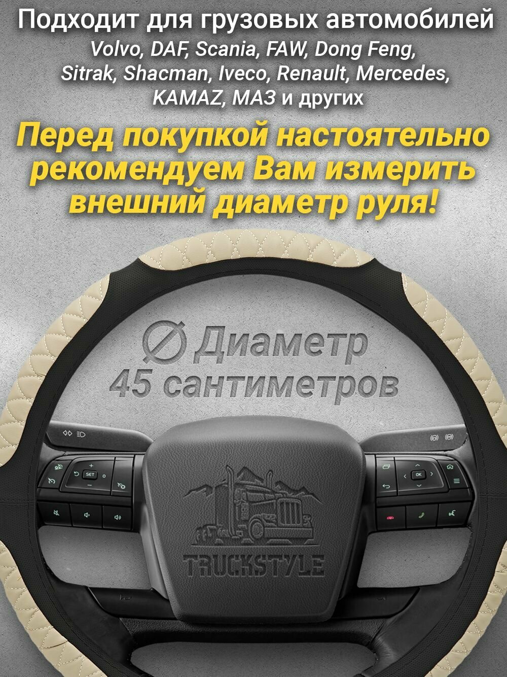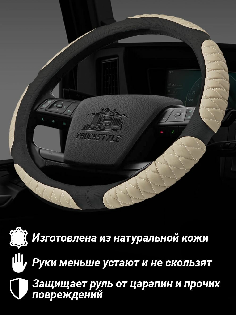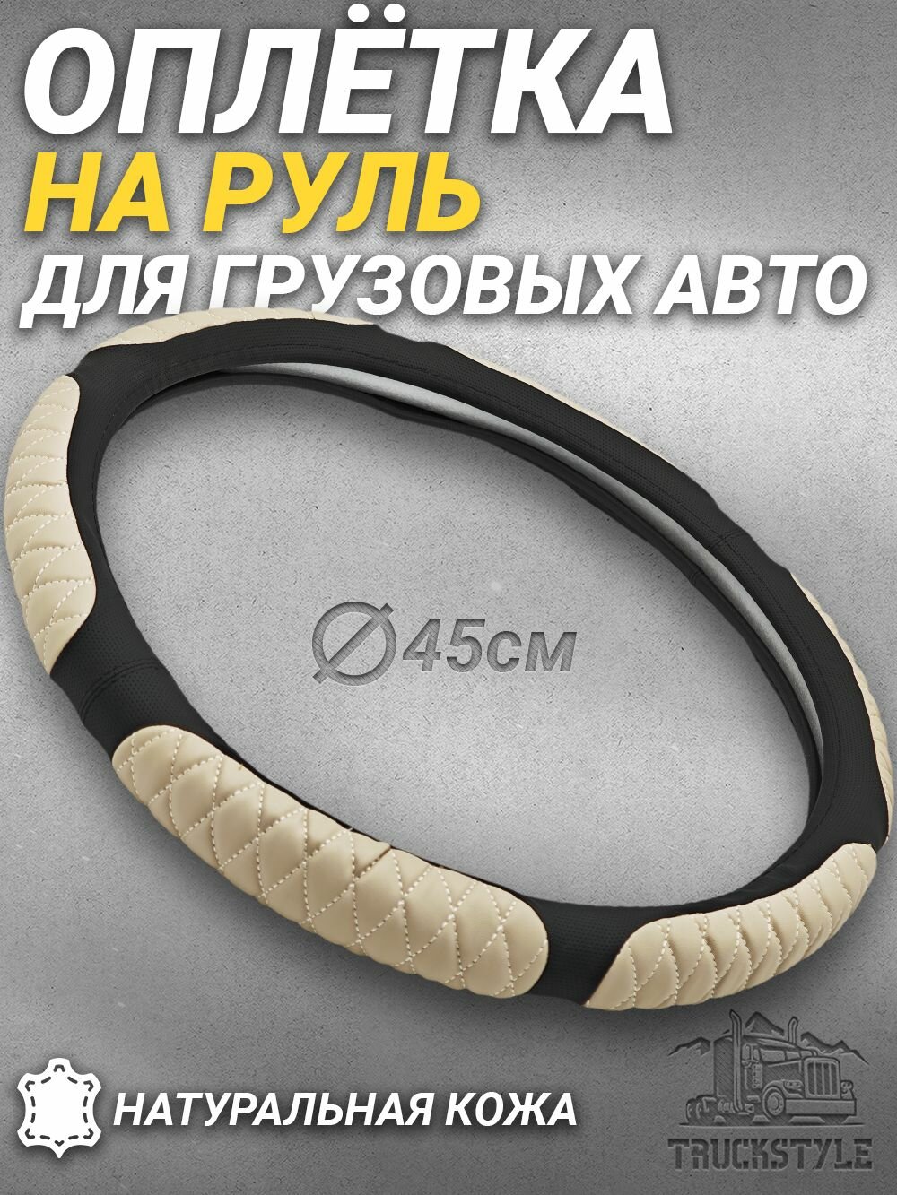 Оплетка на руль грузового автомобиля 45 см. Черный цвет, натуральная кожа с мягкими бежевыми вставками. Подходит на SITRAK, SHACMAN, VOLVO и пр. Аксессуар для грузовика: сравнение цен, характеристики, фото, актуальное наличие и цены.