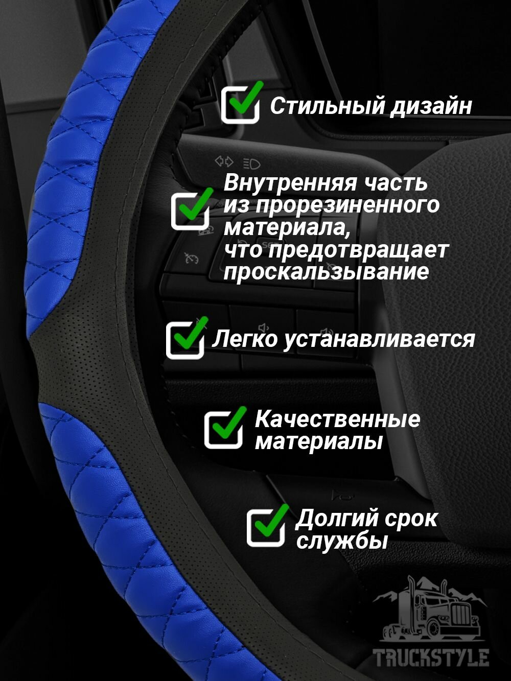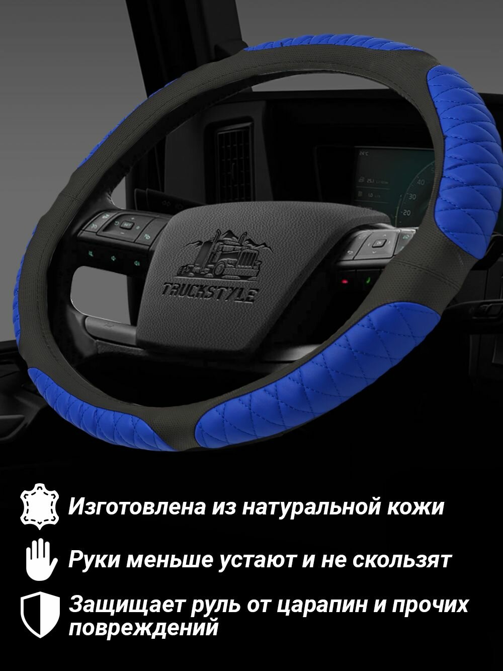 Оплетка на руль грузового автомобиля 45 см. Черный цвет, натуральная кожа с мягкими синими вставками. Подходит на SITRAK, SHACMAN, VOLVO и пр. Аксессуар для грузовика: сравнение цен, характеристики, фото, актуальное наличие и цены.