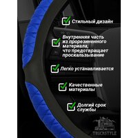 Купить Оплетка на руль грузового автомобиля 45 см. Черный цвет, натуральная кожа с мягкими синими вставками. Подходит на SITRAK, SHACMAN, VOLVO и пр. Аксессуар для грузовика с доставкой по всей России.