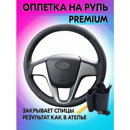 Оплетка на руль из «Premium» экокожи Hyundai Solaris I 2011-2017 г. в. (черная) belais #20941