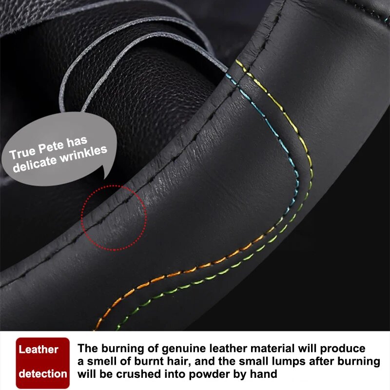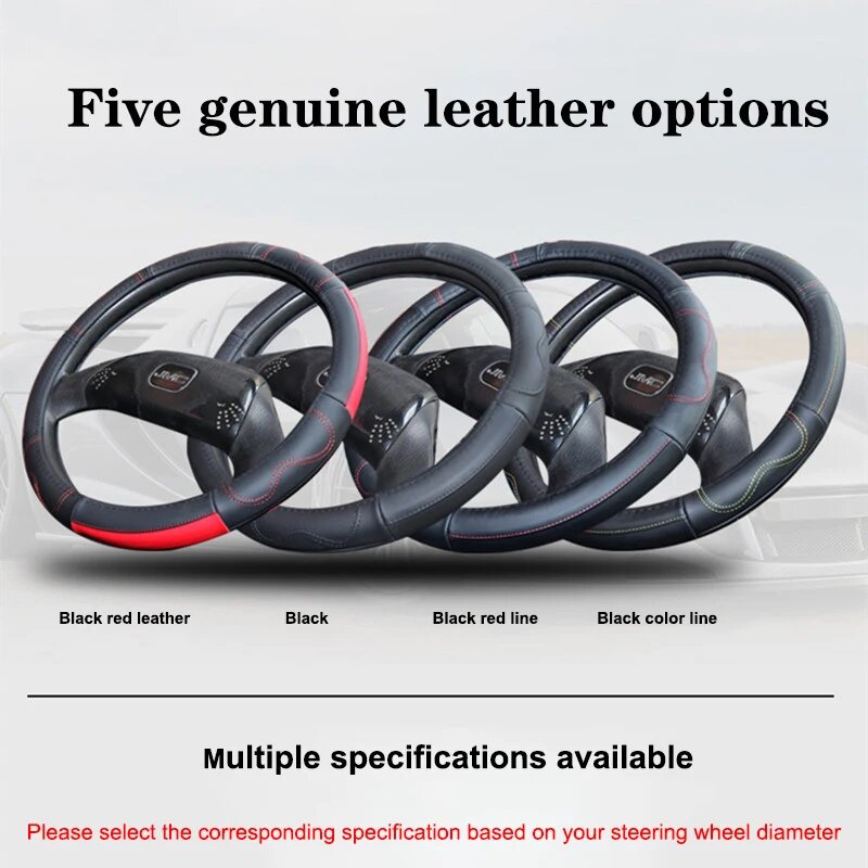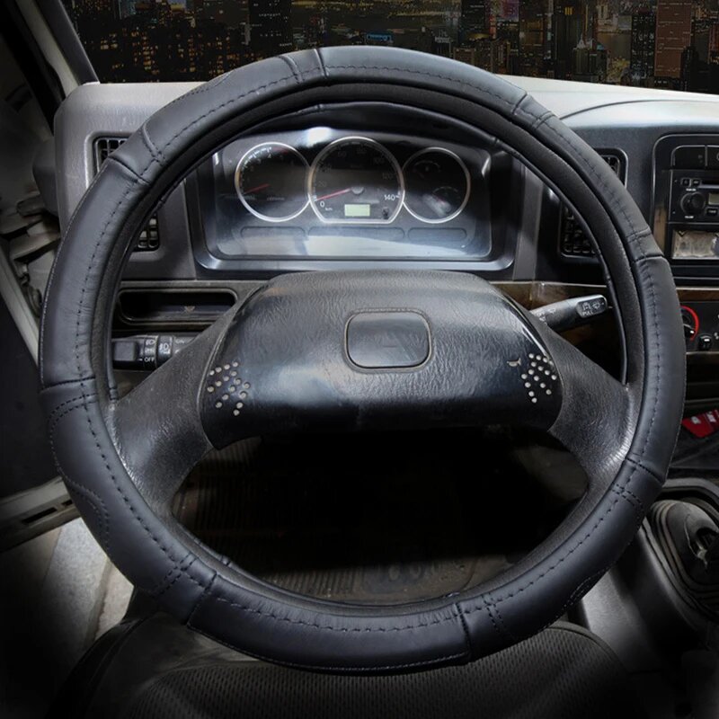 Оплетка рулевого колеса для грузовиков, фургонов, автобусов, из бычьей кожи, противоскользящая и дышащая, для тяжелых больших грузовиков 38-40-45-47-50 см, Black 45cm: сравнение цен, характеристики, фото, актуальное наличие и цены.