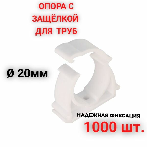 Опора (клипса) с защёлкой предназначена для надежного крепления полипропиленовых труб диаметром 20 мм.