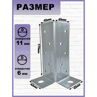 Универсальная опора столба (опора колонны) 45х170 мм - применяется при креплении бруса, столба к бетонному основанию при помощи анкеров, дюбелей. Позволяют жестко закрепить вертикальные элементы конструкции квадратного и прямоугольного сечения такие как - стойки, колонны, подстропильные опоры. Крепеж для столбов ДСУ состоит из двух составных частей, изготовленных методом холодной штамповки из оцинкованной пластины. Ребра жесткости на сгибе повышают прочность крепежного узла. Крепление деревянных столбов происходит саморезами, если установка осуществляется на твердое основание (фундамент), используются анкера. Размер крепежного изделия 45х170 мм где высота 170 мм, ширина 45 мм. Диаметр отверстий 11,5 и 6,5 мм.