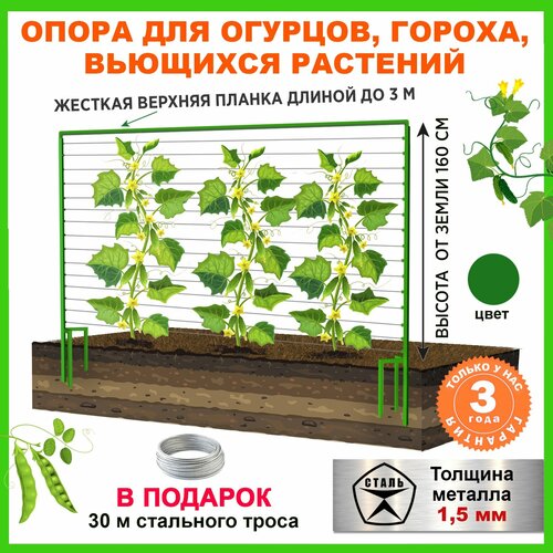 Опора, шпалера для вьющихся растений, в первую очередь для огурцов, гороха, винограда. Так же можно использовать для вьющихся цветов. Шпалера садовая станет отличными помощником в выращивании садовых культур. Шпалера для растений - это еще и декоративное ограждение для сада, которое прекрасно разнообразит его внешний вид. Опора для вьющихся растений и гороха будет оберегать Ваш урожай от соприкосновения с землей. Таким образом растения получают больше света, их удобно поливать, легко обрабатывать грядки от сорняков и собирать урожай. Шпалера на дачу металлическая. Товар продается напрямую от производителя, поэтому мы даем гарантию качества и самые выгодные цены.