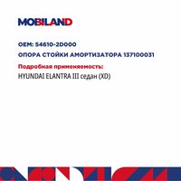 Опора стойки амортизатора с подшипником для а/м HYUNDAI ELANTRA III седан, MOBILAND 137100031: сравнение цен, характеристики, фото, актуальное наличие и цены.