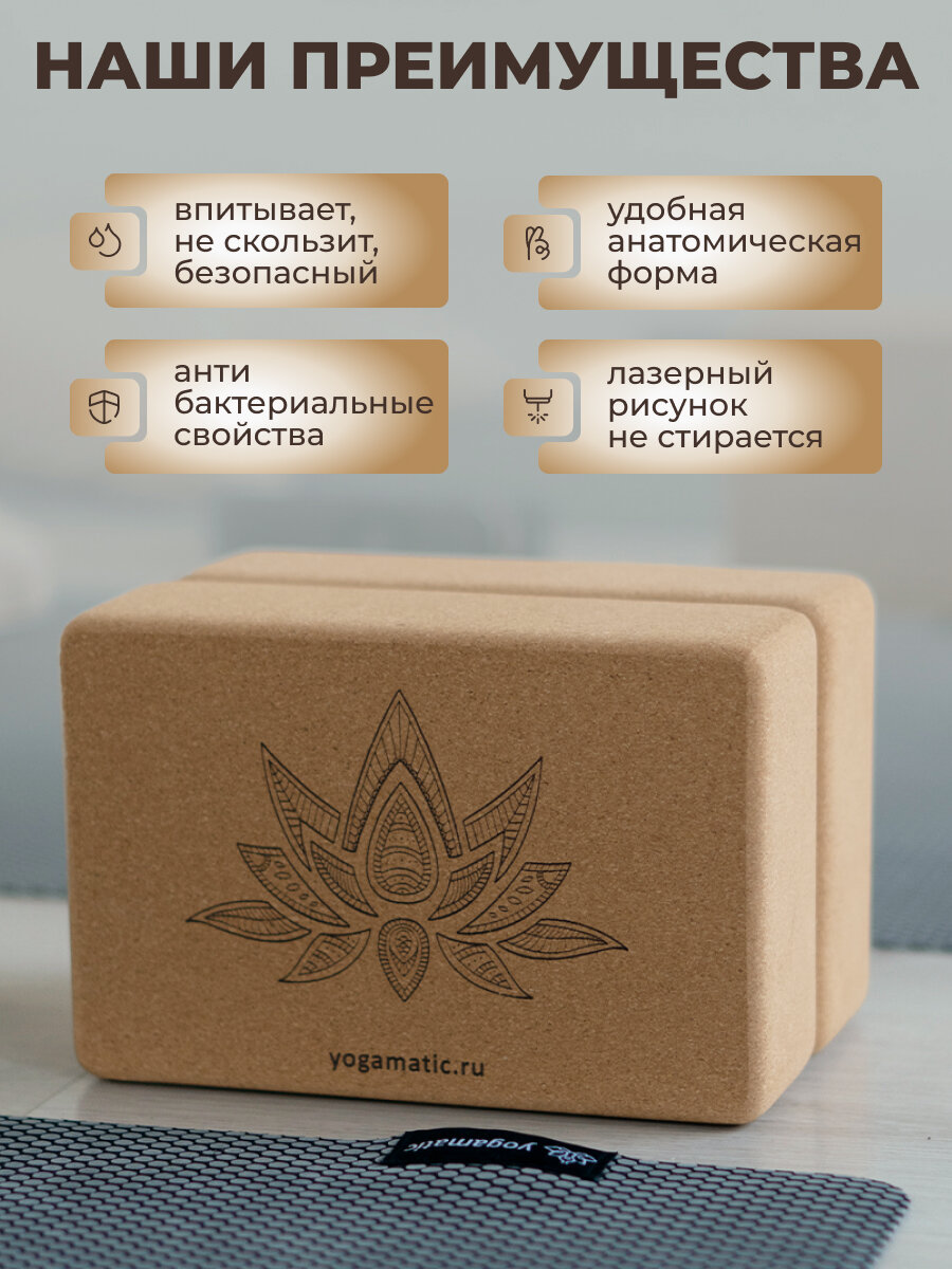А вам нужна помощь в отстройке асан? В том, чтобы не скользить и сделать их более устойчивыми и комфортными? В том, чтобы улучшить гибкость, растяжку и увеличить силу? В том, чтобы научиться выполнять сложные балансы? Всех этих целей помогает достичь йога-блок из пробки. Только представьте: когда ваши руки не могут касаться земли, вам не нужно перенапрягаться. Или вы можете глубже погрузиться в асану и чувствовать себя увереннее, обретя стабильную опору. Или вы можете комфортно растянуть мышцы. Или удобно сесть во время медитации. В чем другие плюсы блоков от Арт йогаматик? Натуральные - только чистая пробка и никакой химии. Безопасные - помогают не скользить в сложных асанах и балансах. Прочные - выдерживают высокую нагрузку и не крошатся. Комфортные - в меру мягкие, но не продавливаются и отлично впитывают влагу. Гигиеничные - пробка предотвращает размножение бактерий и грибков. Эстетичные - дизайн всеми любимый Лотос, нанесен лазером и не сотрется.