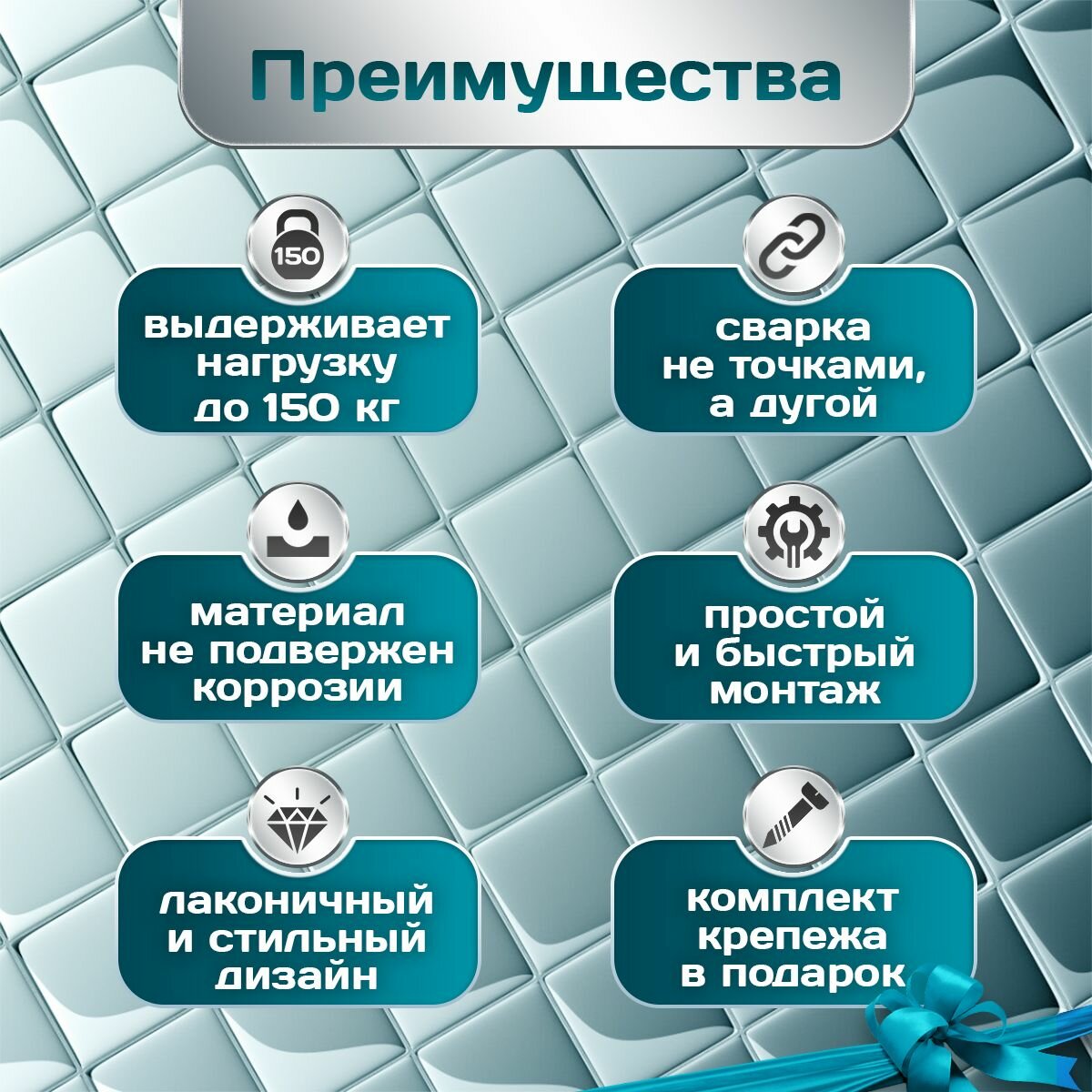 Опорный поручень изготовлен на собственном производстве из нержавеющей стали AISI 201 толщиной 1,5 мм российскими мастерами. Поручень сварной, и в отличии от сборных моделей, не раскрутится с течением времени и способен выдерживать большие нагрузки долгие годы. Все части поручня закругленные, что обеспечивает безопасную эксплуатацию.