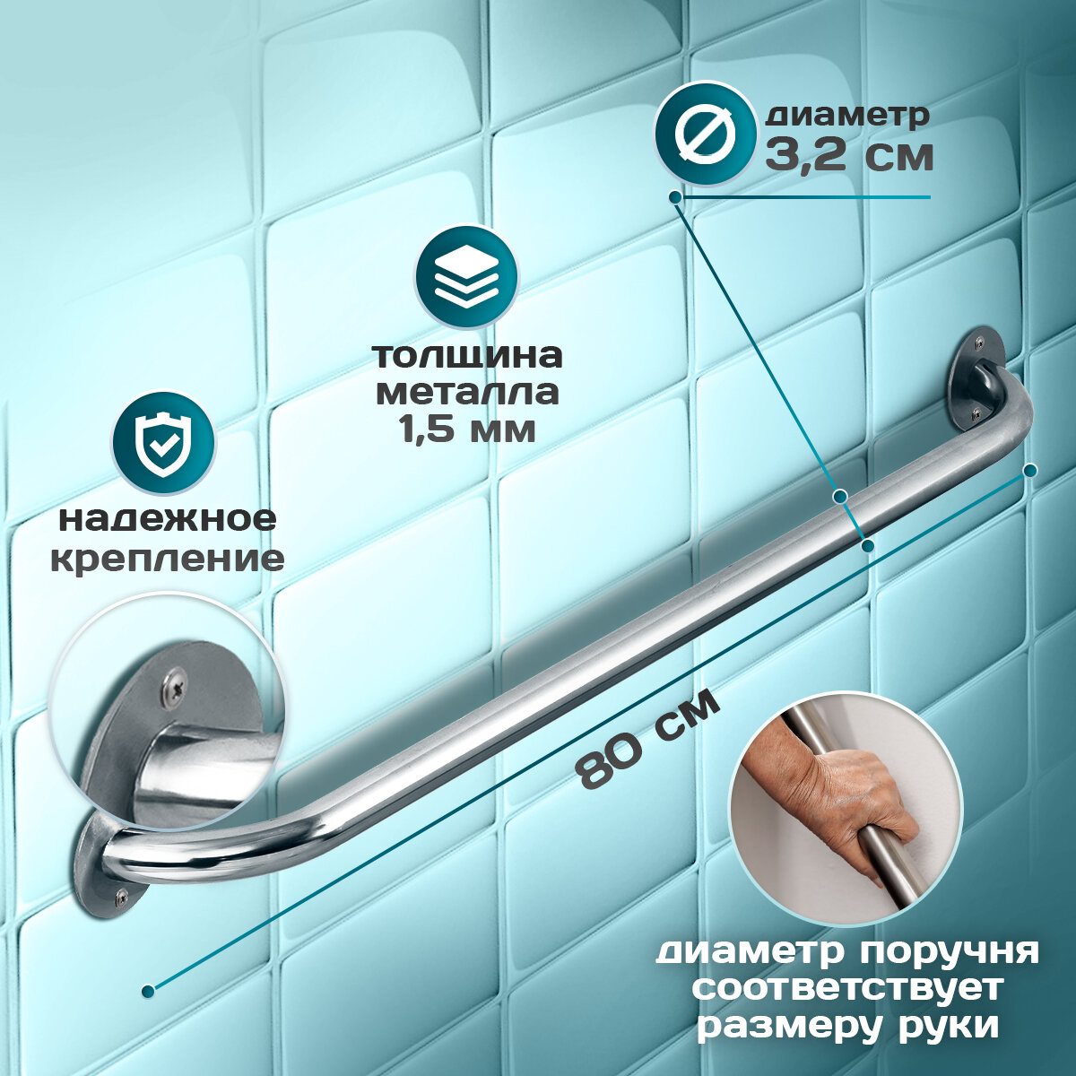 Опорный поручень прямой для ванной комнаты, туалета, для людей с ограниченными физическими возможностями; диаметр 32мм, длина 800мм (80 см), нержавеющая сталь aisi 201, 2 крепления: сравнение цен, характеристики, фото, актуальное наличие и цены.