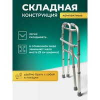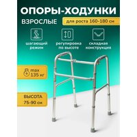 Складные опоры-ходунки W Universal под рост: 155-180 см имеют функцию «с шагом/без шага». Функция «шага» дает возможность переставлять поручни поочередно. Телескопическая конструкция позволяет регулировать высоту изделия. Ходунки изготовлены из прочного и легкого алюминиевого сплава. Максимальная нагрузка составляет 135 кг. В сложенном виде ширина ходунков составляет всего 9 см.