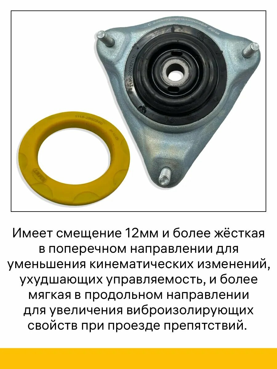 Комплект, состоящий из 2 опор передней стойки и 2 подшипников скольжения для ВАЗ 2190 с электроусилителем руля, от российской компании "бмрт" (БалаковоМеталлоРезиноТехника) 2190-2902820-10. С ЭУР Смещение: 12 мм.